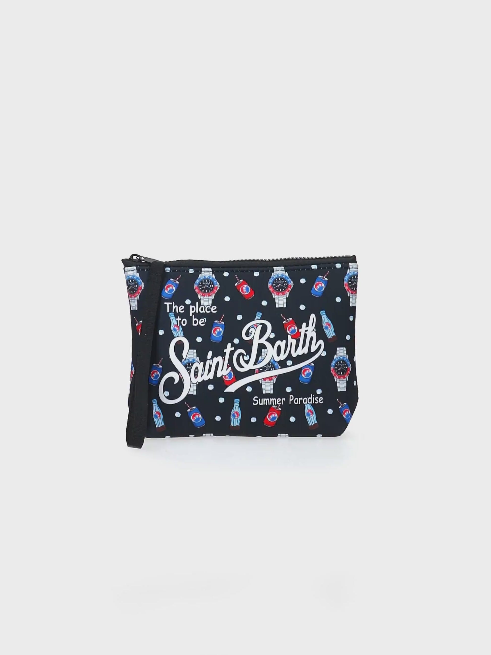 Aline Scuba-Pochette mit Uhren- und Getränke-Print