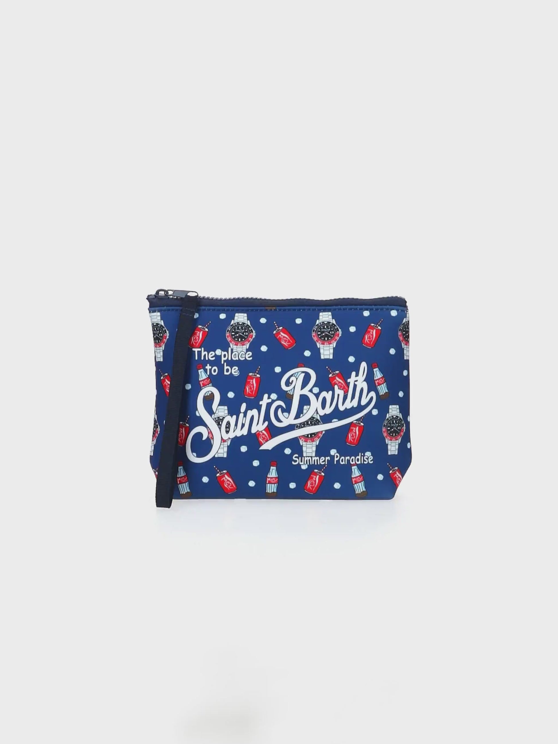 Aline Scuba-Pochette mit Uhren- und Cola-Print