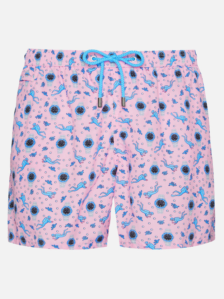 Badeshorts aus leichtem Stoff „Lighting“ mit Uhren-Print