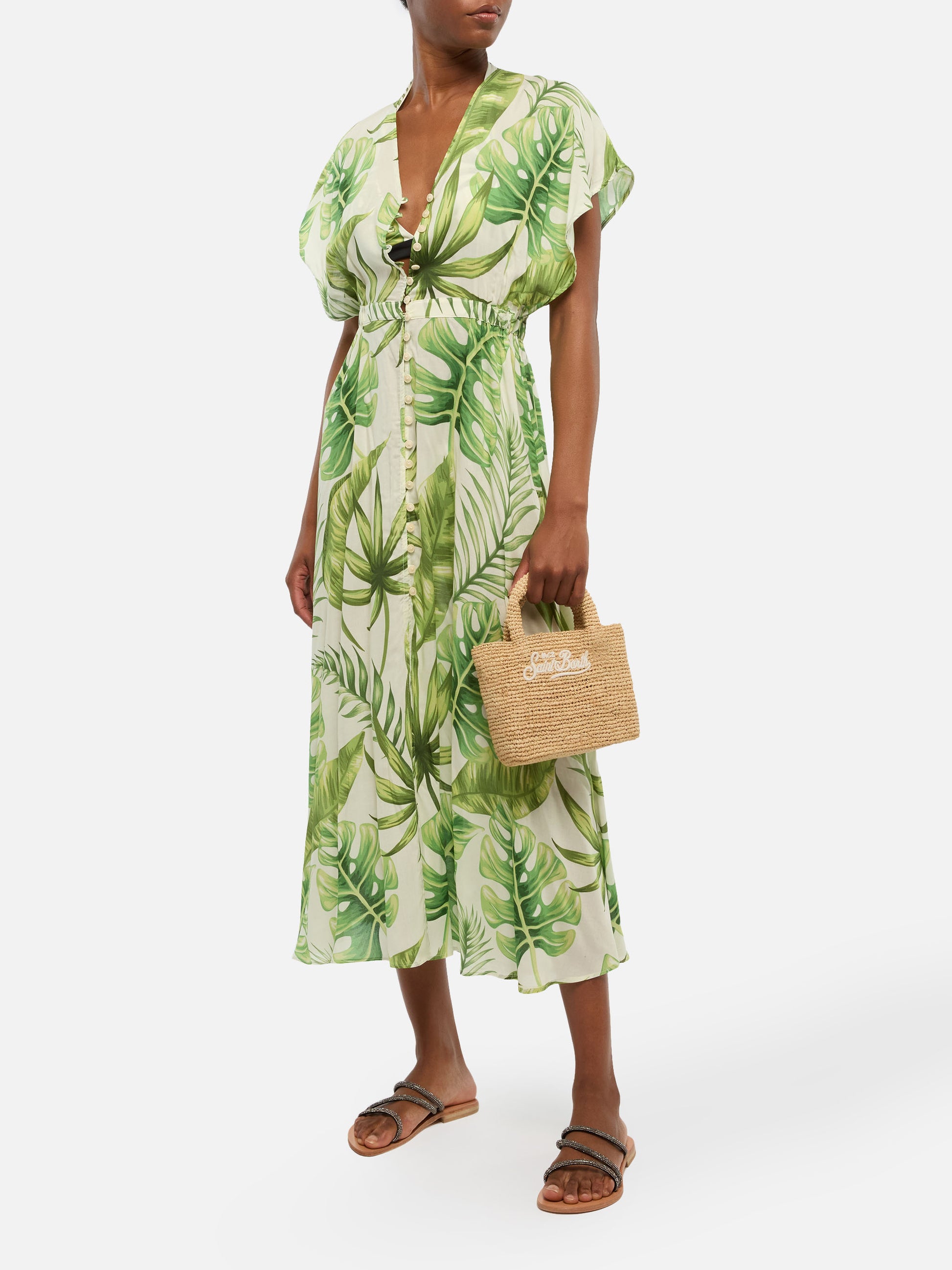 Beige Mini-Strandtasche aus Raffiabast mit Baumwollbeutel