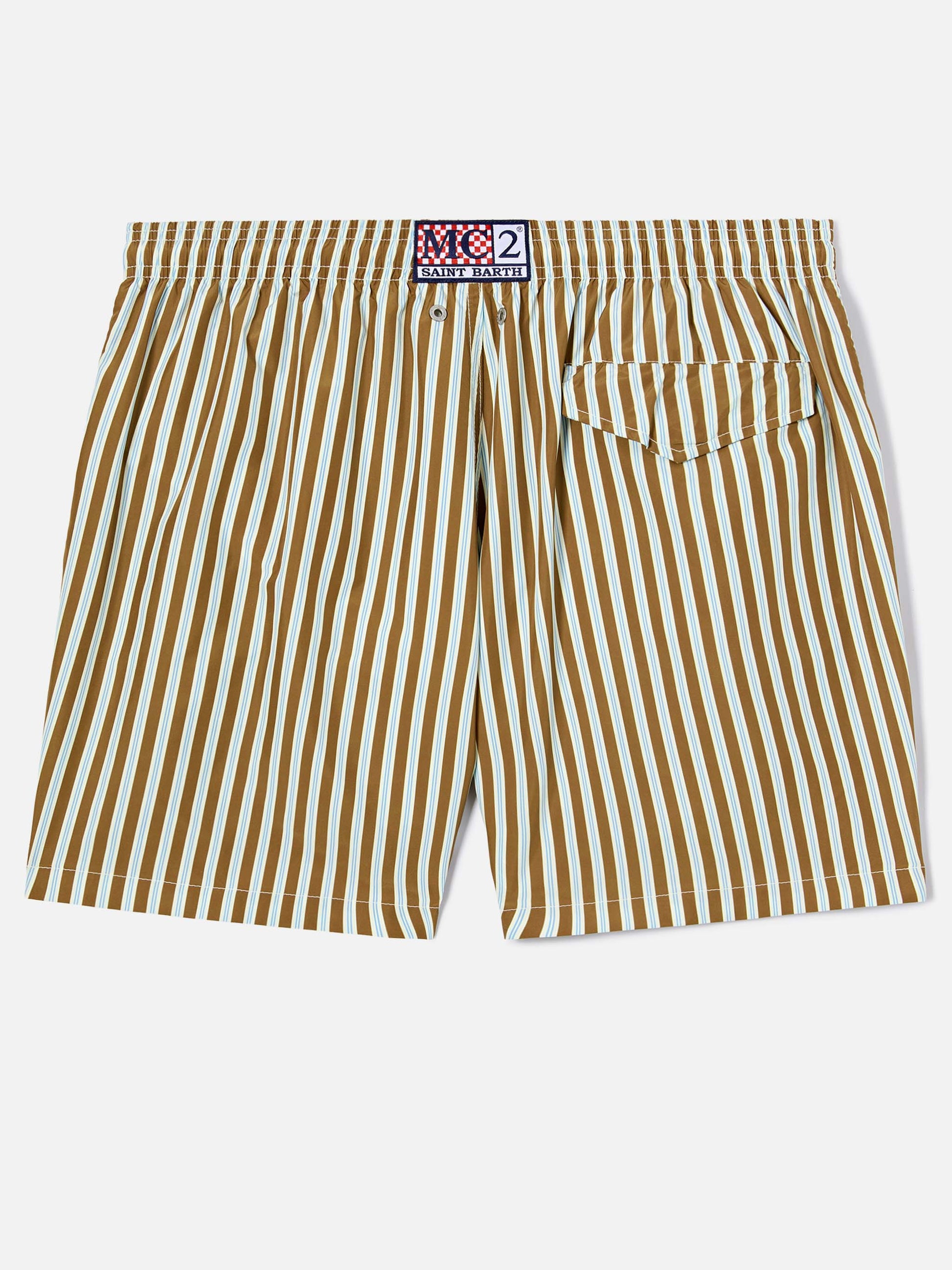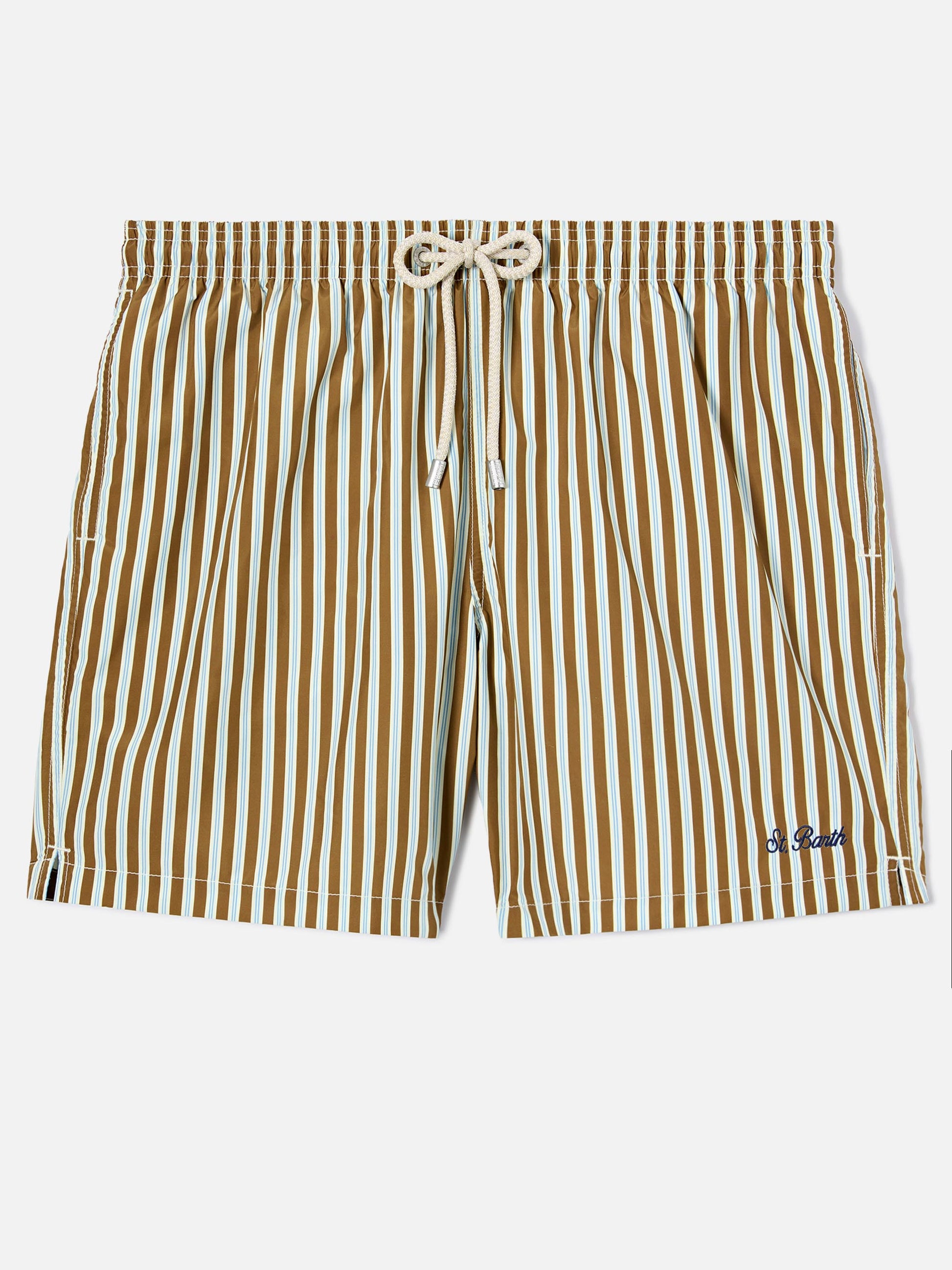 Brown striped Lighting swim shorts with St. Barth embroidery