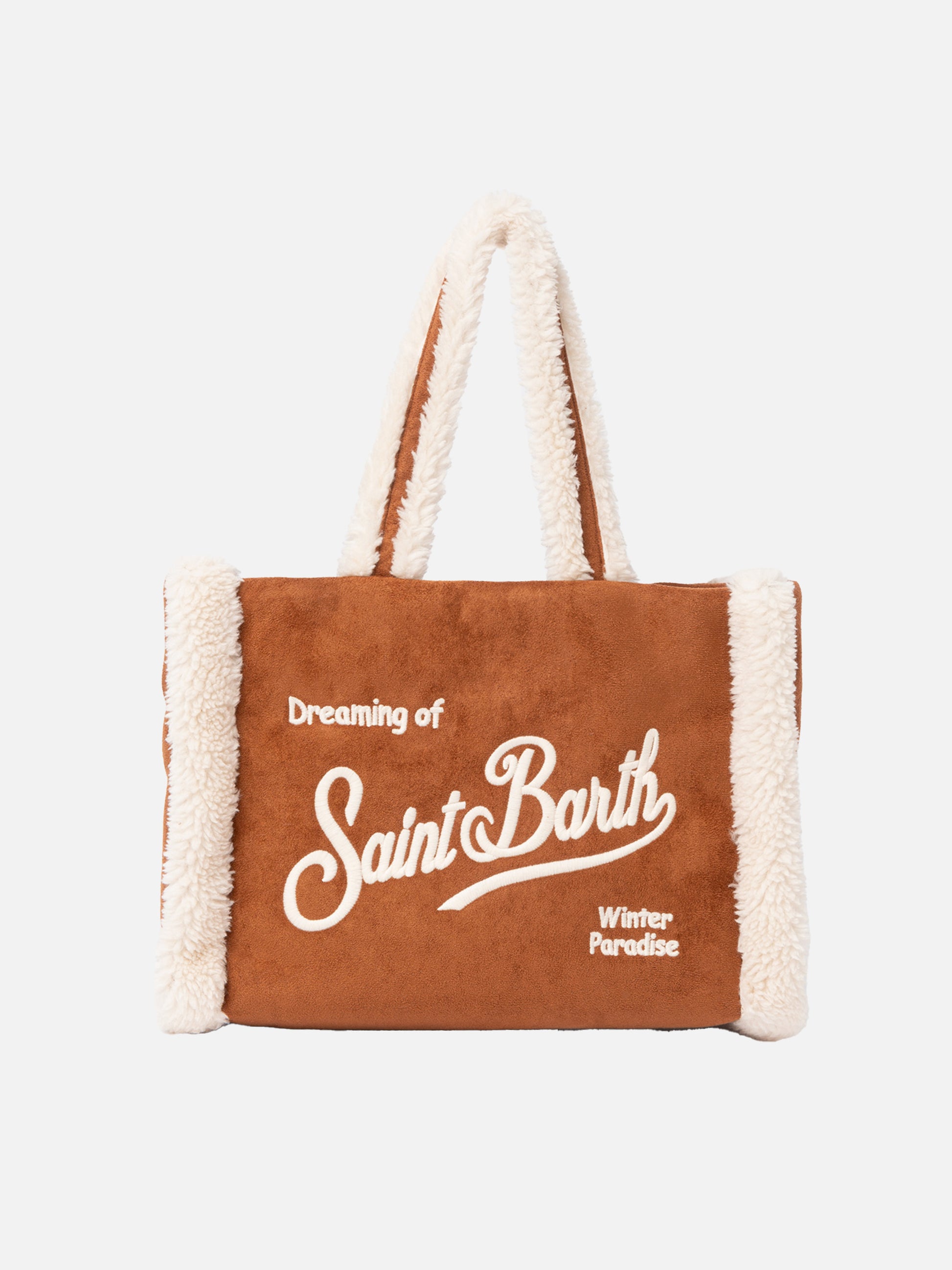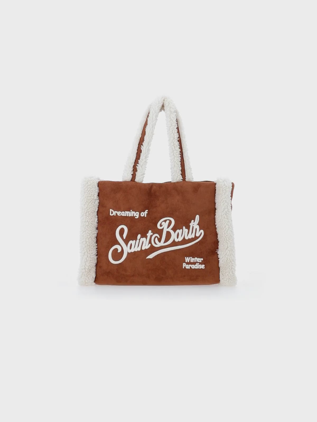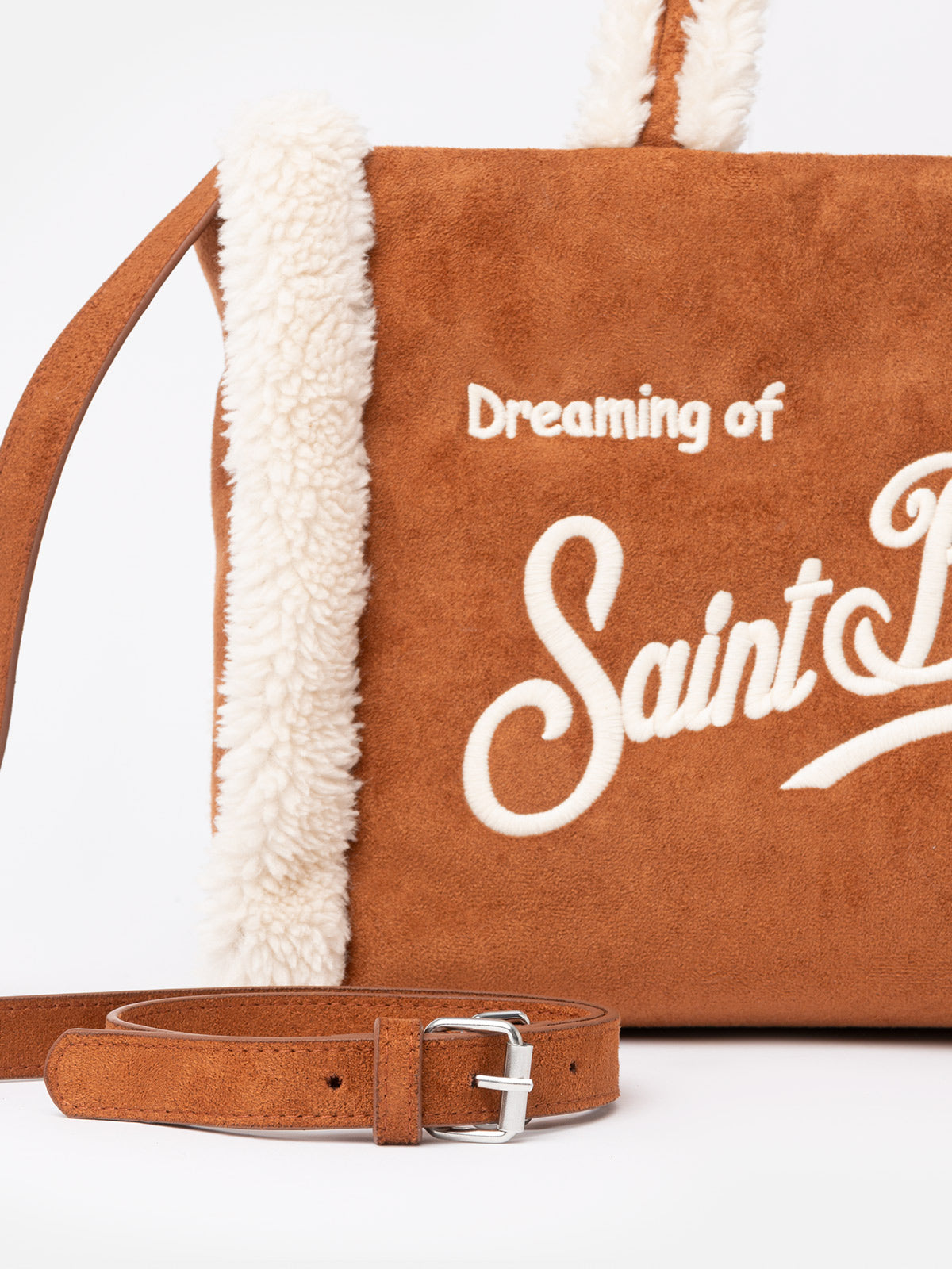 Kamelbraune Soft Bag Small mit Saint Barth Logo und Schultergurt