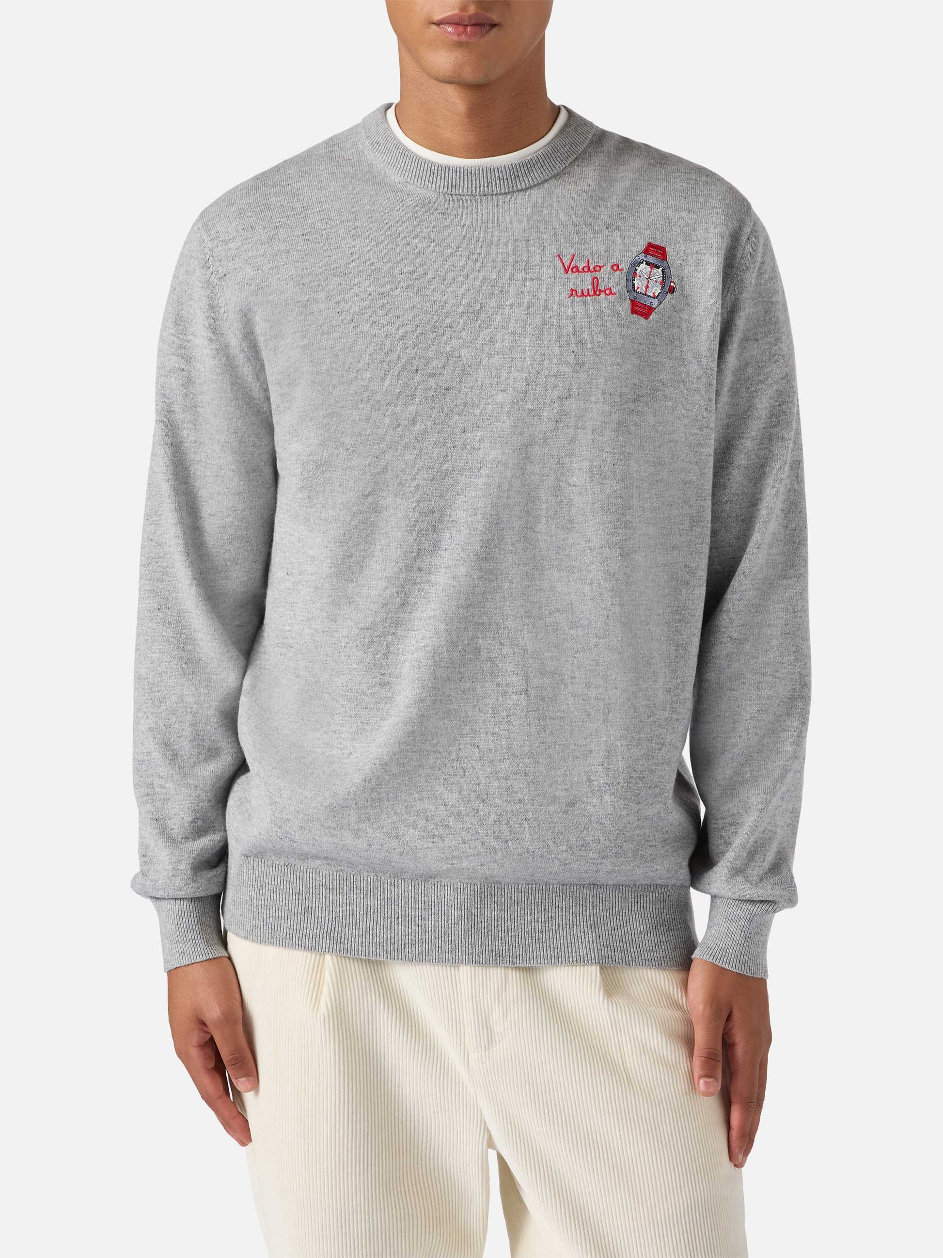 Crewneck sweater Heron Light with Vado a ruba embroidery