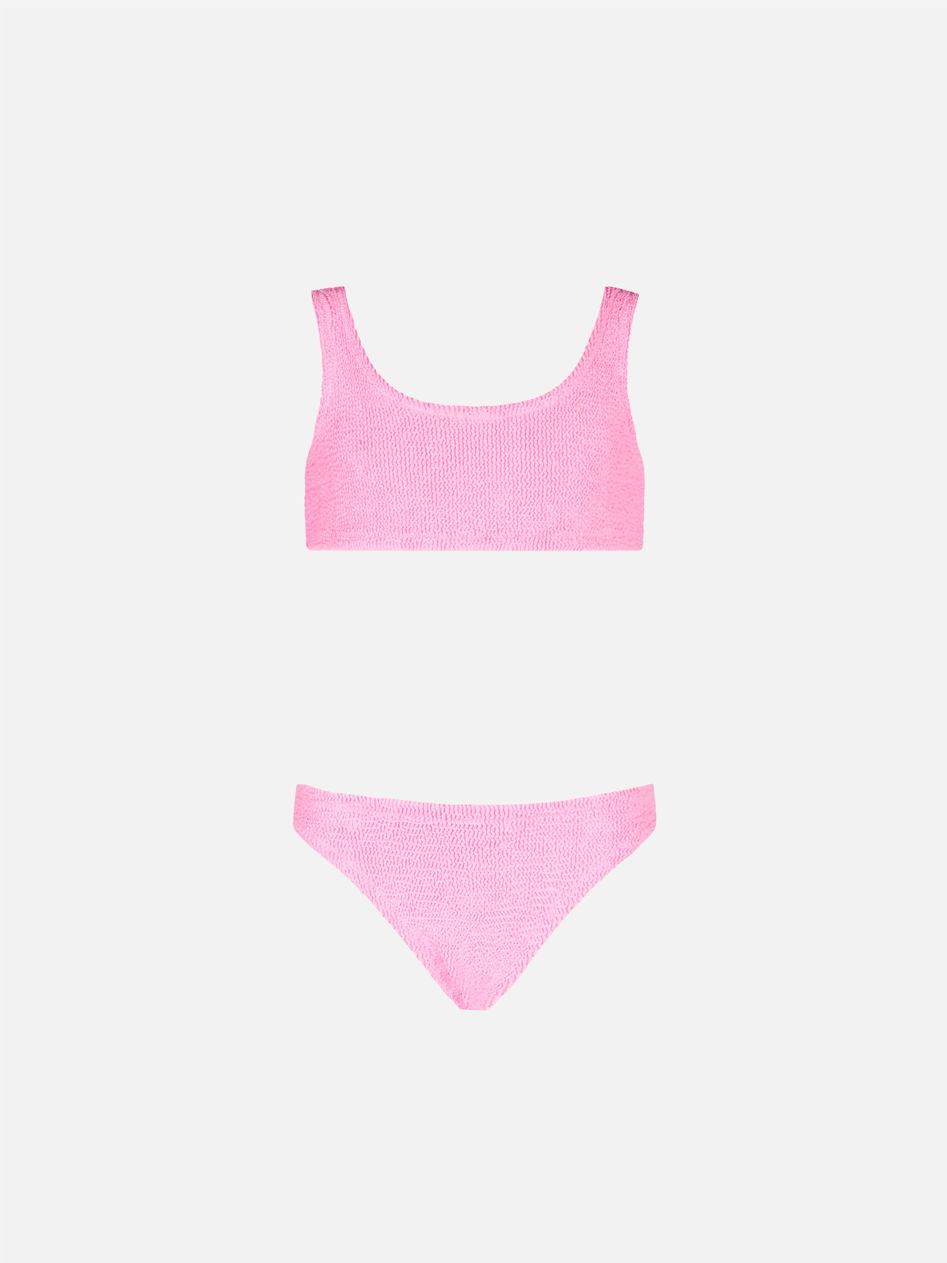Rosafarbener Bralette-Bikini für Mädchen in Knitteroptik