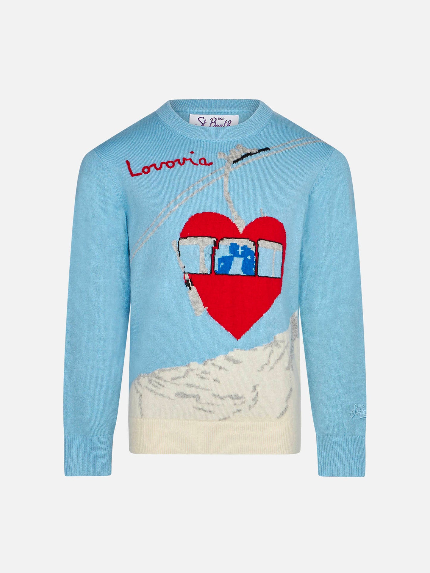 Mädchenpullover im Vintage-Postkartenstil mit Lovovia-Stickerei