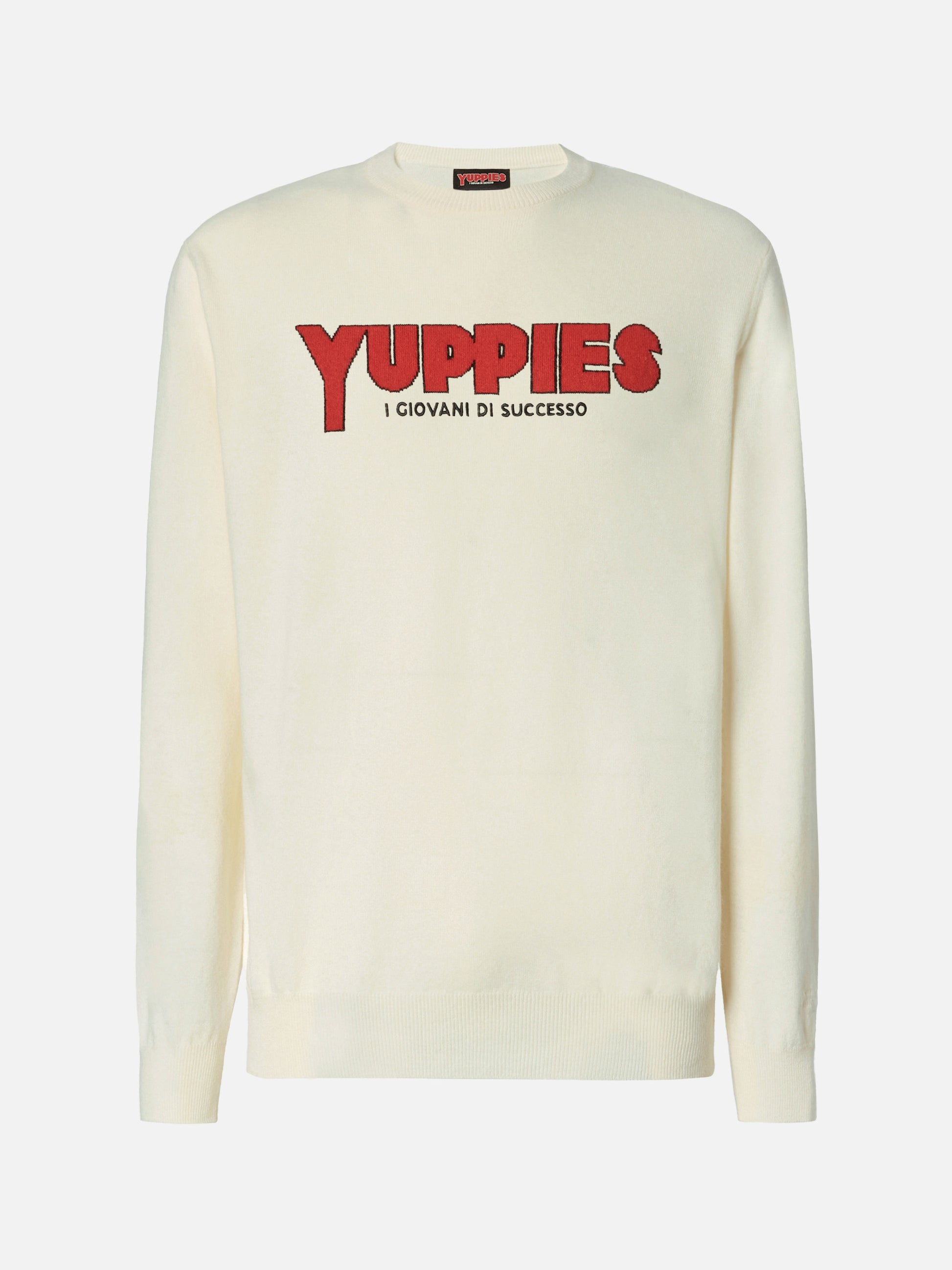 Heron Light Pullover in Weiß mit Yuppies-Jacquardmuster und Stickerei | YUPPIES SONDEREDITION