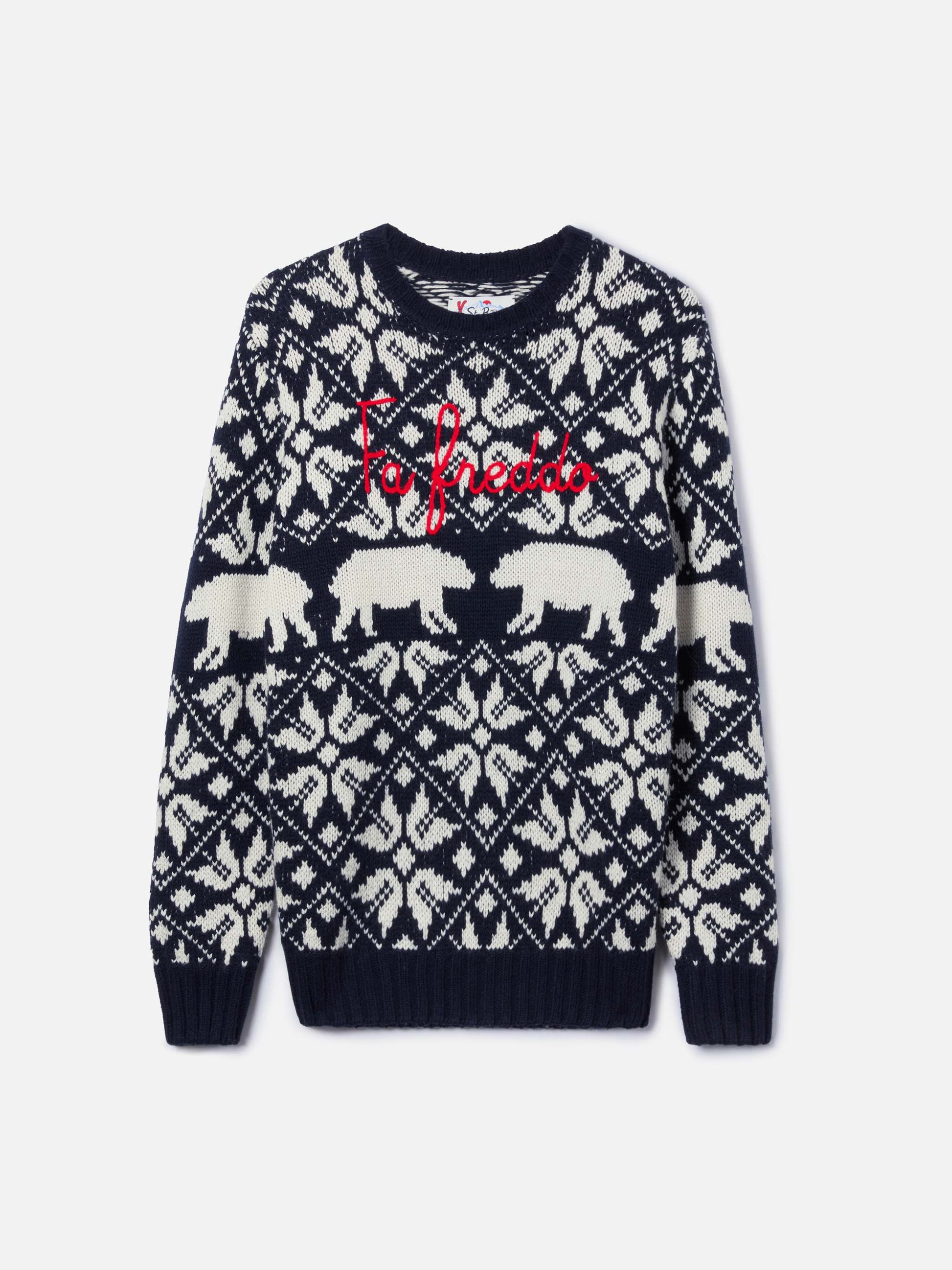 Herrenpullover Bombardino mit norwegischem Jacquard und Fa Freddo-Stickerei