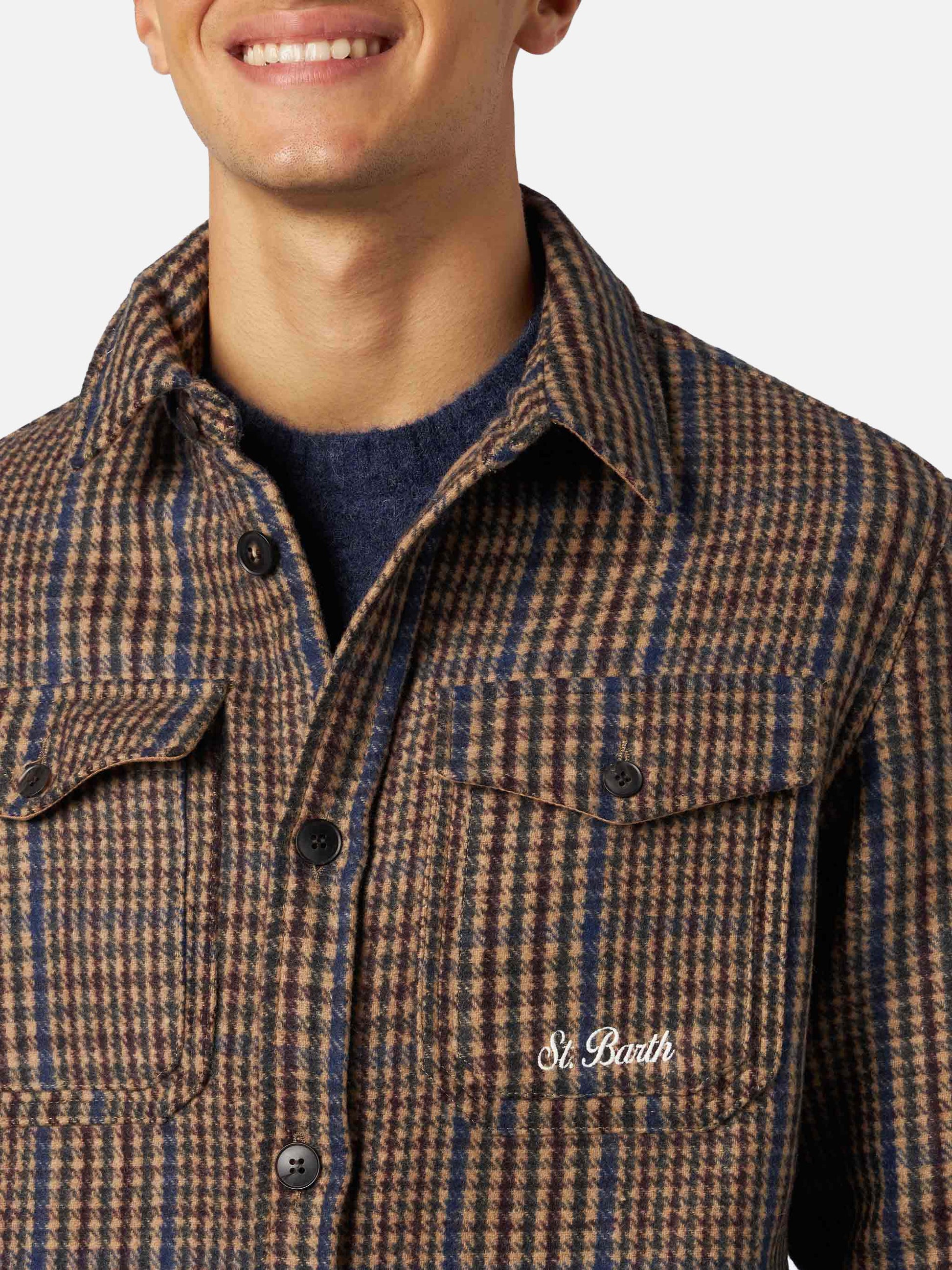 Herren-Überhemd im Prince-of-Wales-Stil aus Wolle mit Taschen und Aufnähern
