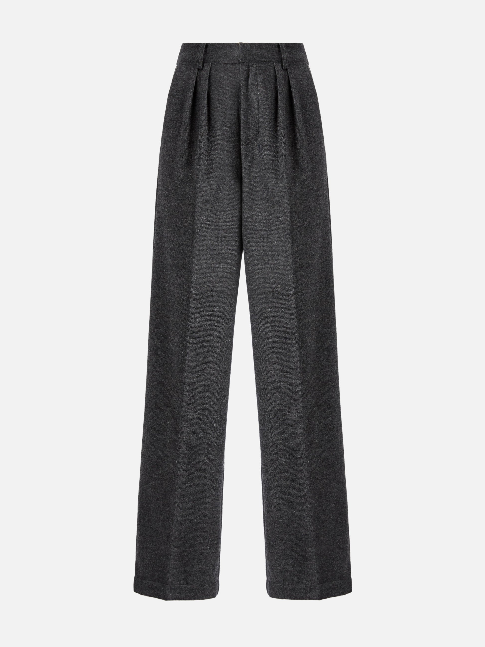 Marcel Hose mit geradem Bein, grau meliert mit Bundfalten