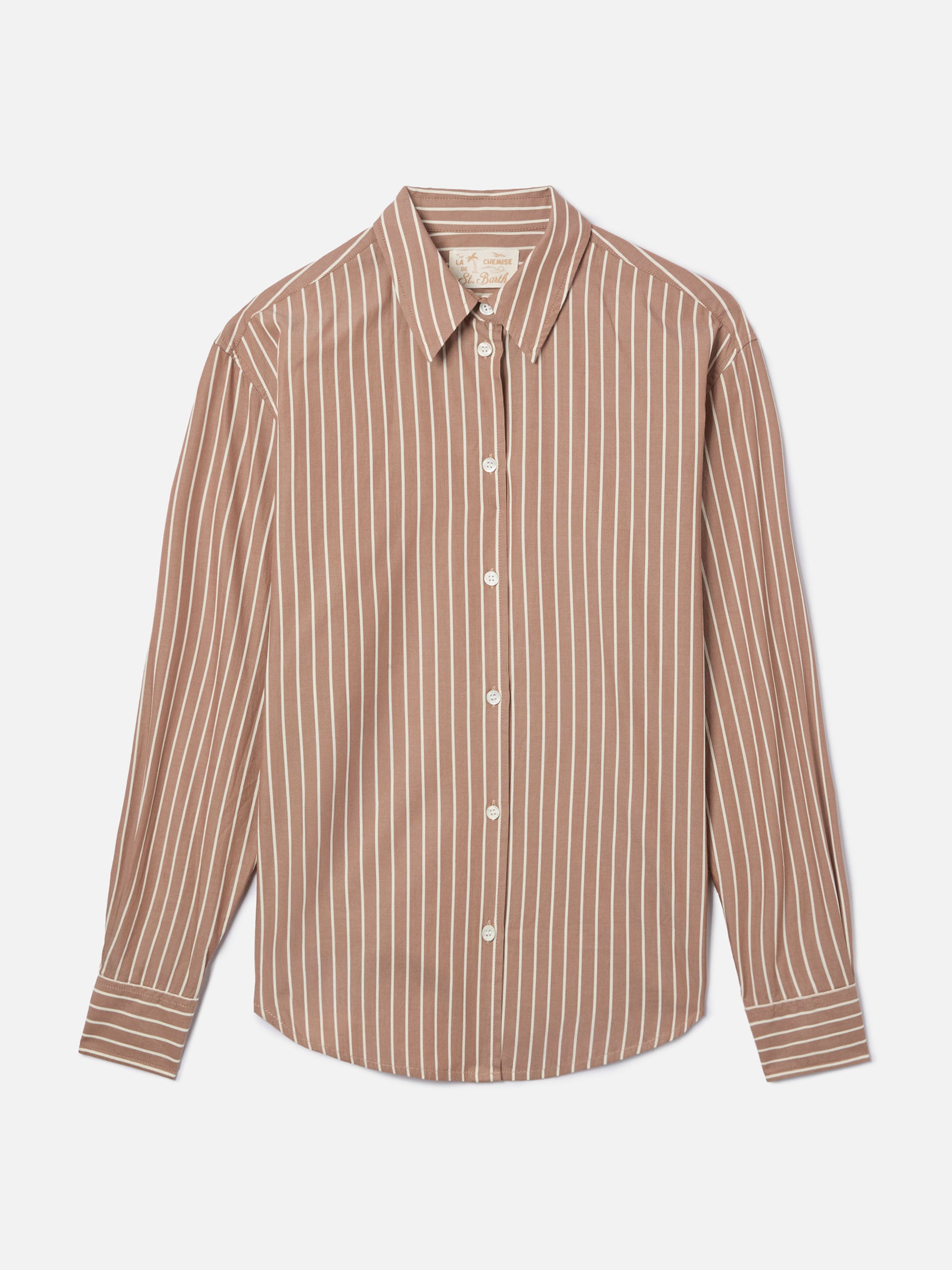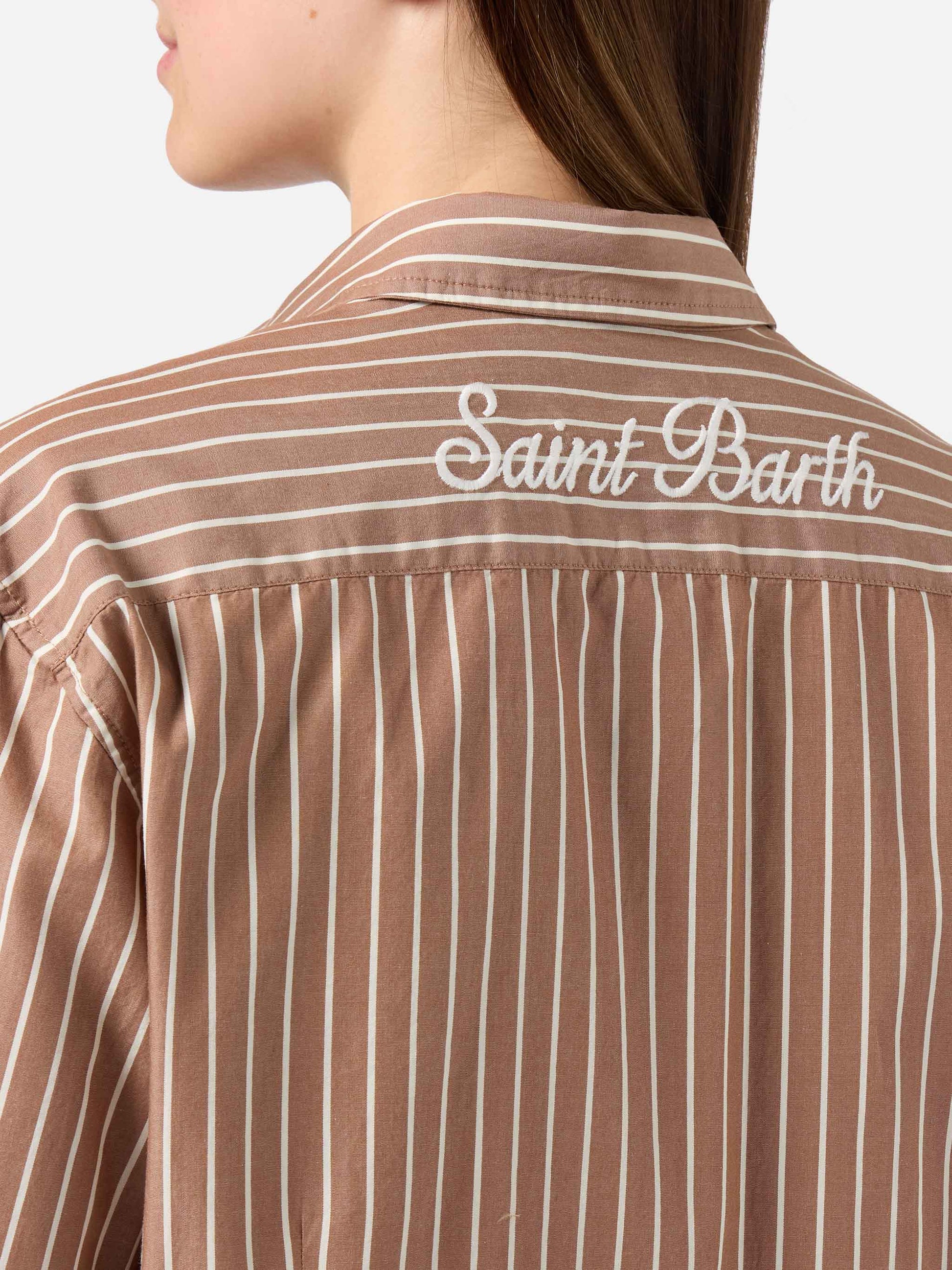 Meredith cotton shirt with brown stripes and Saint Barth embroidery