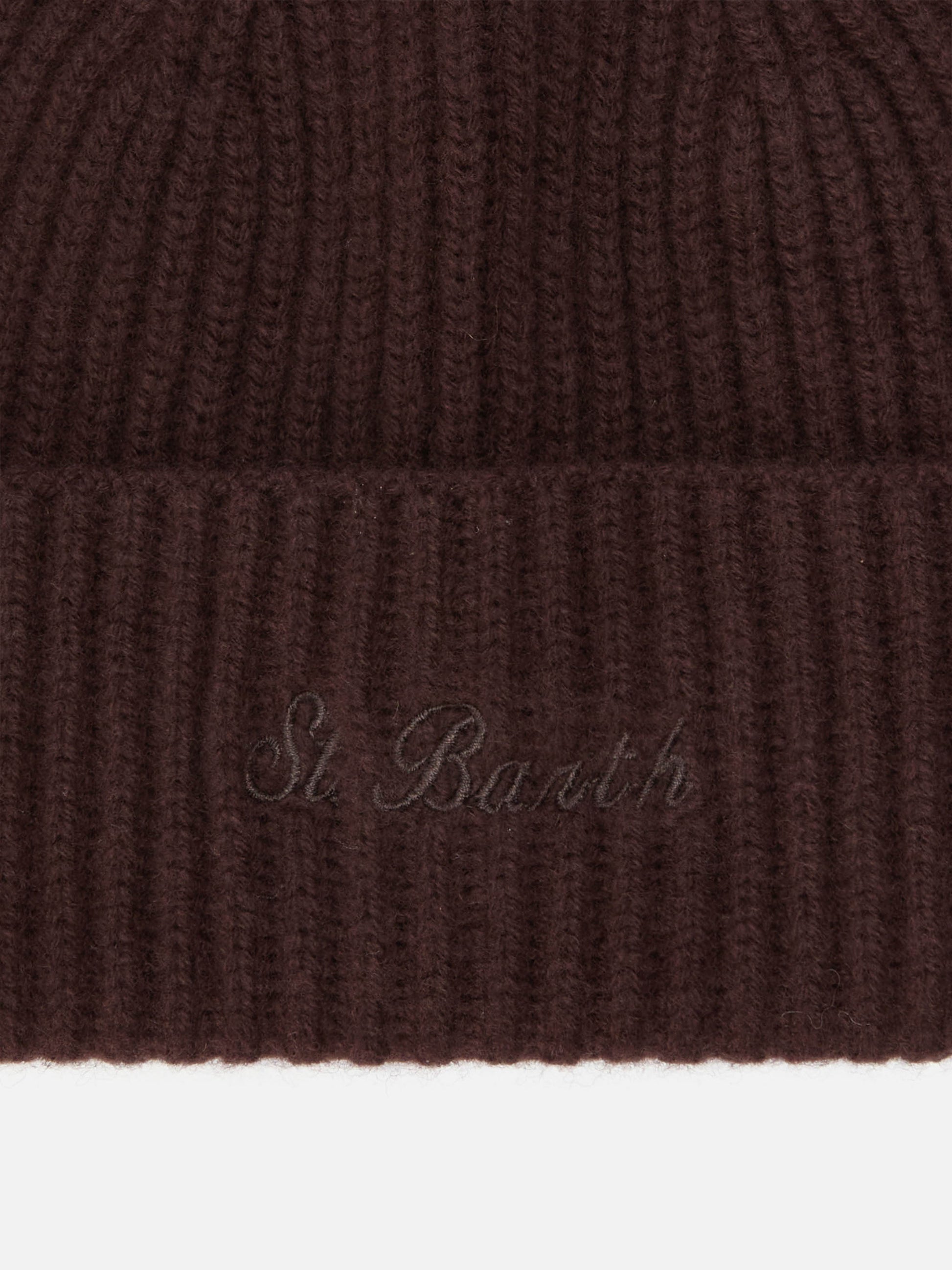 Moss Beanie in brown 100% WOOL with St. Barth embroidery