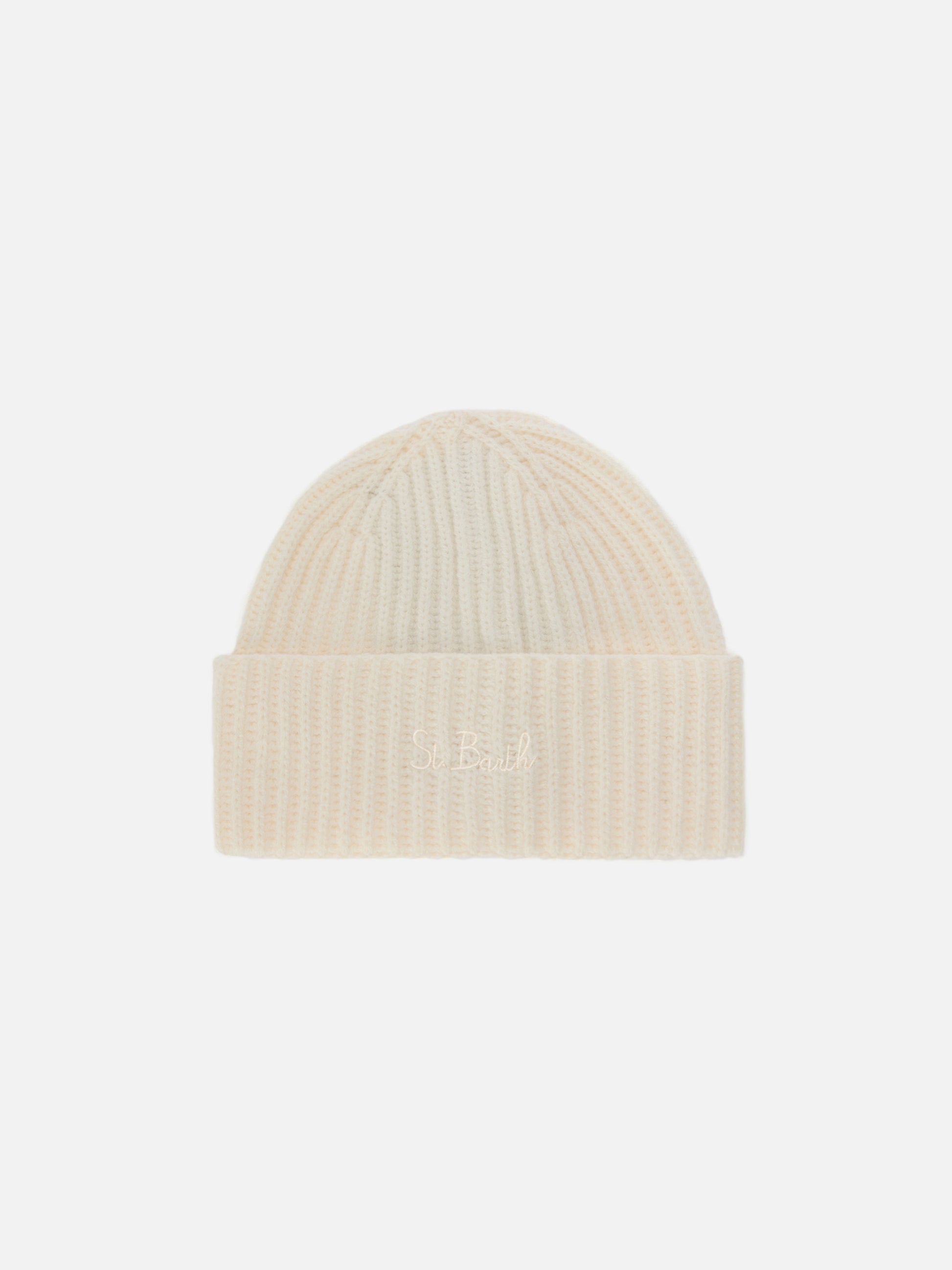 Moss Jr beanie in white 100% WOOL with St. Barth embroidery