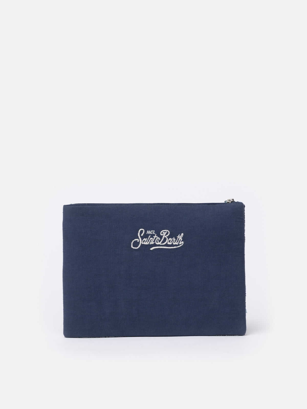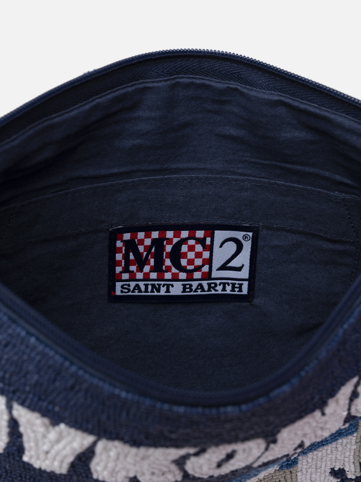 Wir stellen Ihnen unsere Pouch Pearl vor, ein bezauberndes Accessoire, das mit aufwendigen Perlenarbeiten verziert ist, die ikonische Küstenziele auf der ganzen Welt darstellen. Dieser mit viel Liebe zum Detail gefertigte Beutel verfügt über eine mit Baumwolle gefütterte Innenseite für zusätzliche Haltbarkeit und Komfort. Der Reißverschluss ist mit einer Baumwollquaste zum einfachen Öffnen und Schließen versehen. Im Inneren finden Sie eine praktische Tasche zum Organisieren Ihrer wichtigsten Utensilien. Die Rückseite ist mit einem gestickten MC2 Saint Barth-Logo auf Baumwollstoff verziert.