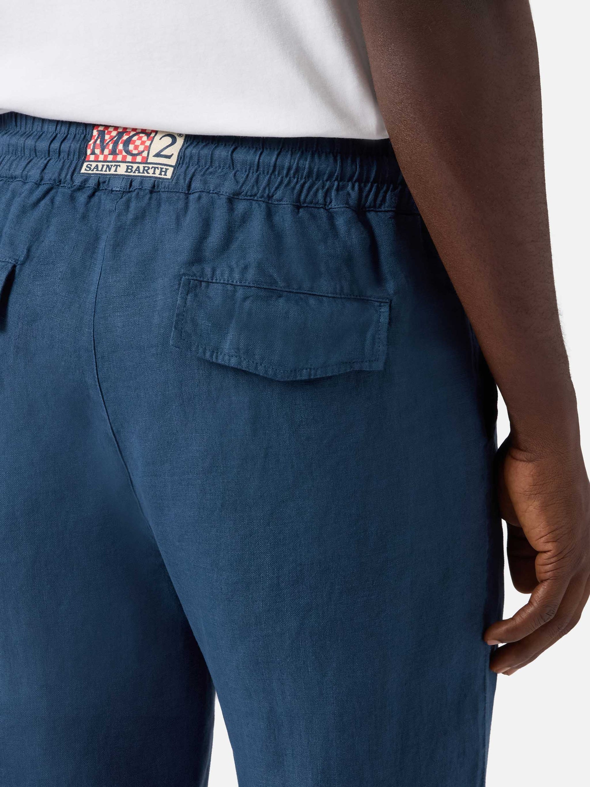 https://it.mc2saintbarth.com/de/products/navy-blue-brown-calais-long-pants-in-pure-linen10781194518874Navy blue brown Calais long pants in pure linen239.00https:files/UID_CAA000109931L-MAN-PANT-BLUE-MC2-MC2_2.jpghttps:files/UID_CAA000109931L-MAN-PANT-BLUE-MC2-MC2_2.jpgEURInStockPANT650948215130Alle Produkte – nur von Man649134276954AVADA - Bestseller278947365048Bermudashorts und Hosen für Herren293962940600Herren-Leinenkollektion654690877786Upselling_Man_PantsThe Calais long pants are crafted from pure linen, a lightweight and breathable fabric designed to offer comfort and ease. The solid color design enhances the clean aesthetic of the style. The elasticated waistband with braided rope drawstring with white-red binding allows easy adjustment of the fit. The style is completed with front slanted pockets, back flap pockets with logo buttons and a logo label applied at the center back of the waistband. The straight leg and relaxed fit ensure comfort and freedom of movement.