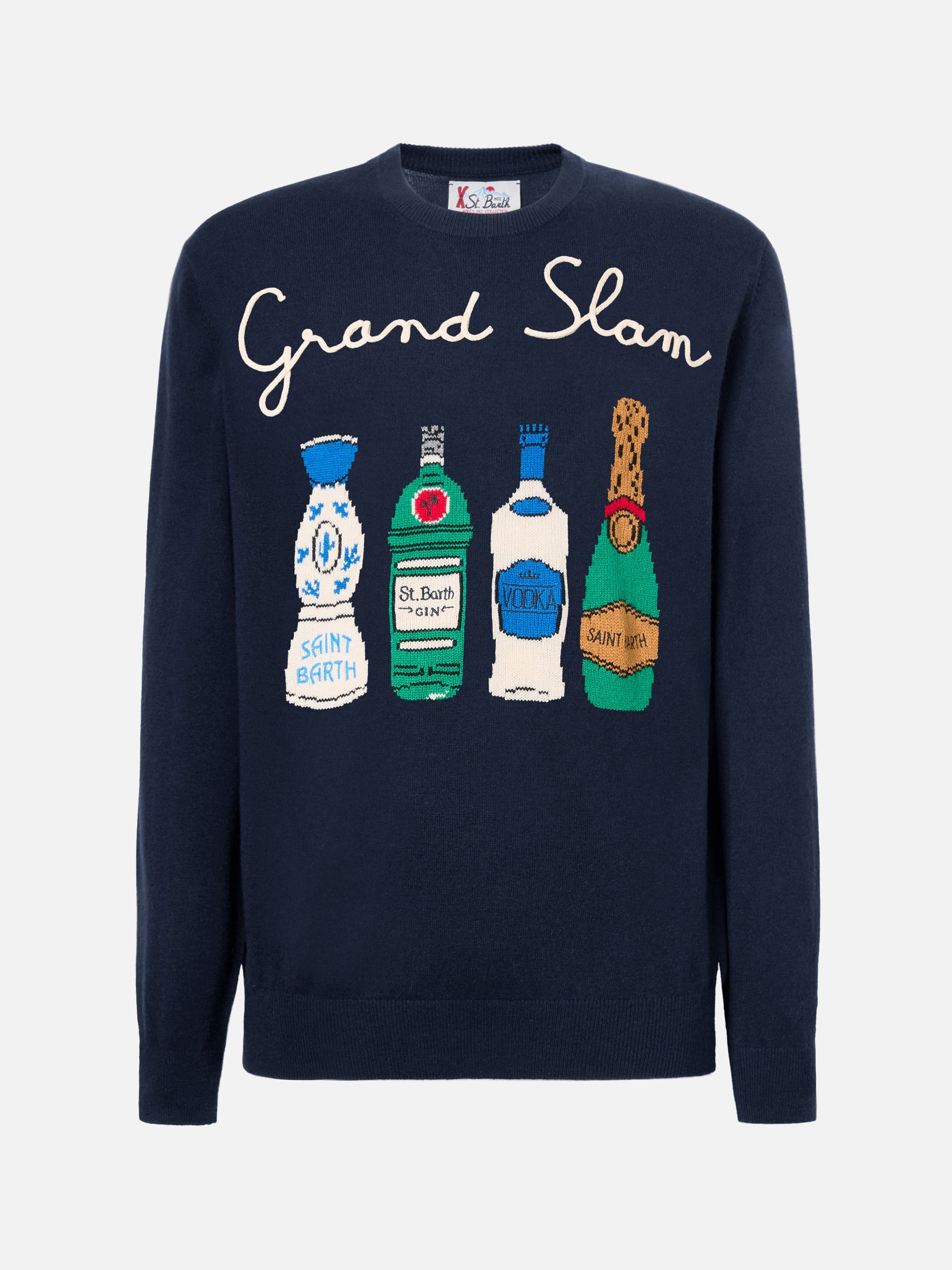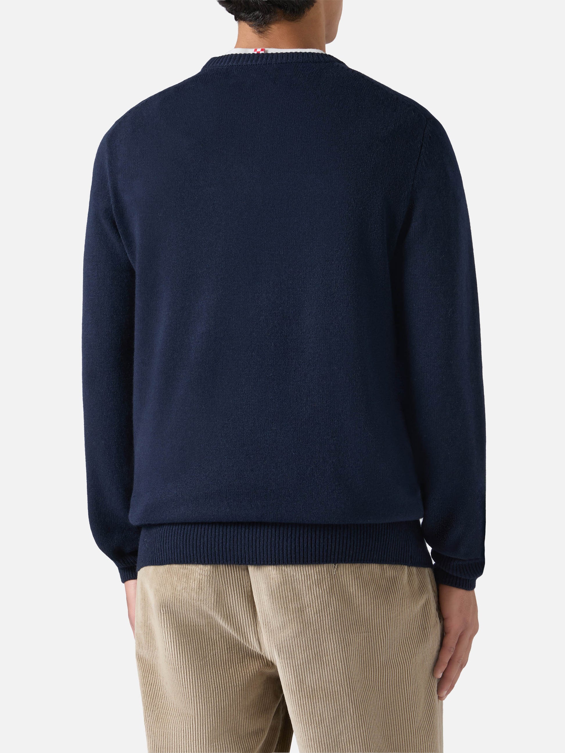 Marineblauer Heron-Rundhalsausschnitt mit Grand-Slam-Stickerei