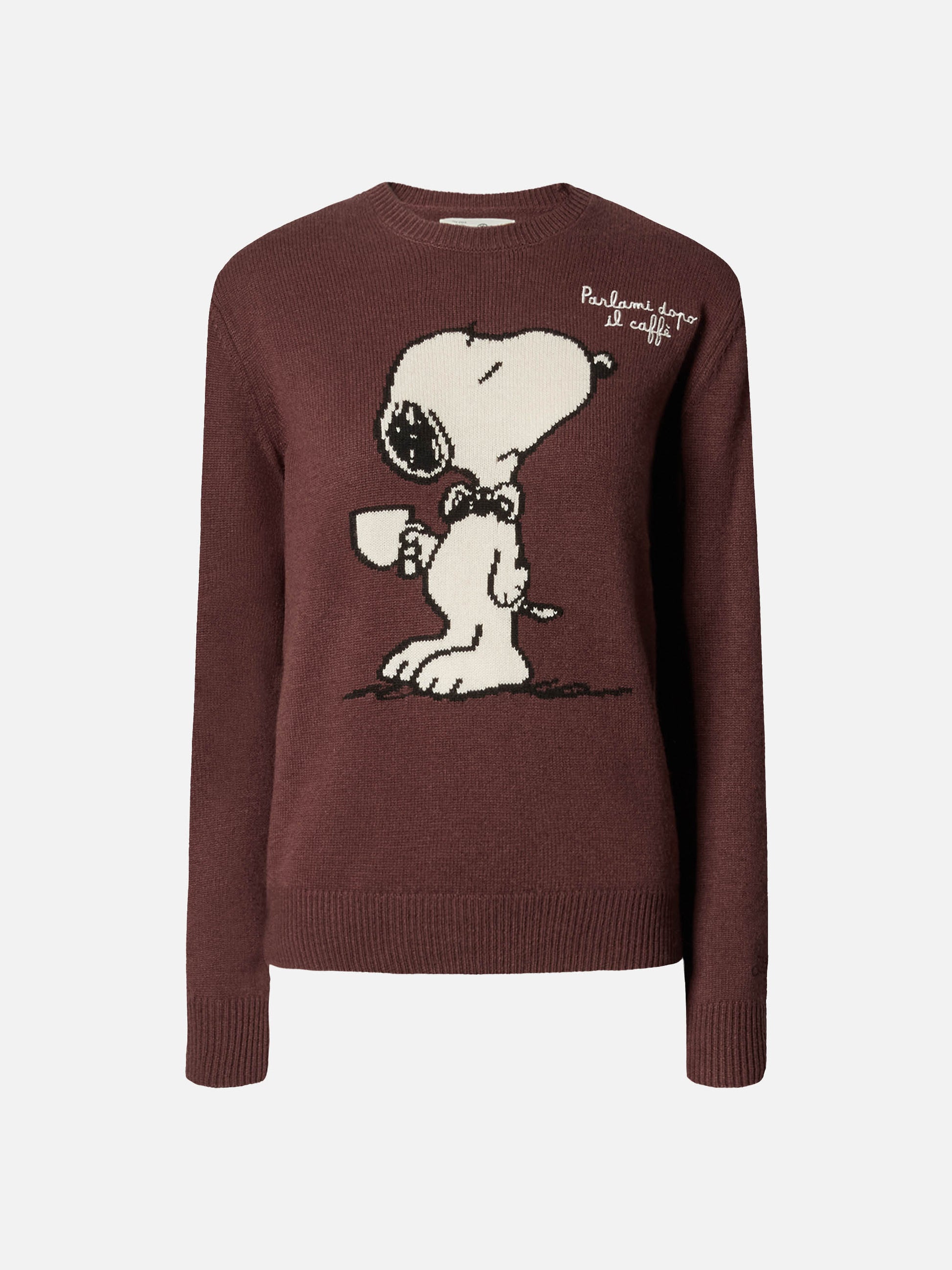 New Queen cashmere-blend sweater in brown with Snoopy jacquard and embroidery | PEANUTS SPECIAL EDITION