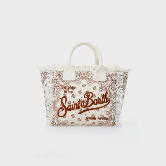 Beige Bandanna-Handtasche Colette aus Baumwollcanvas