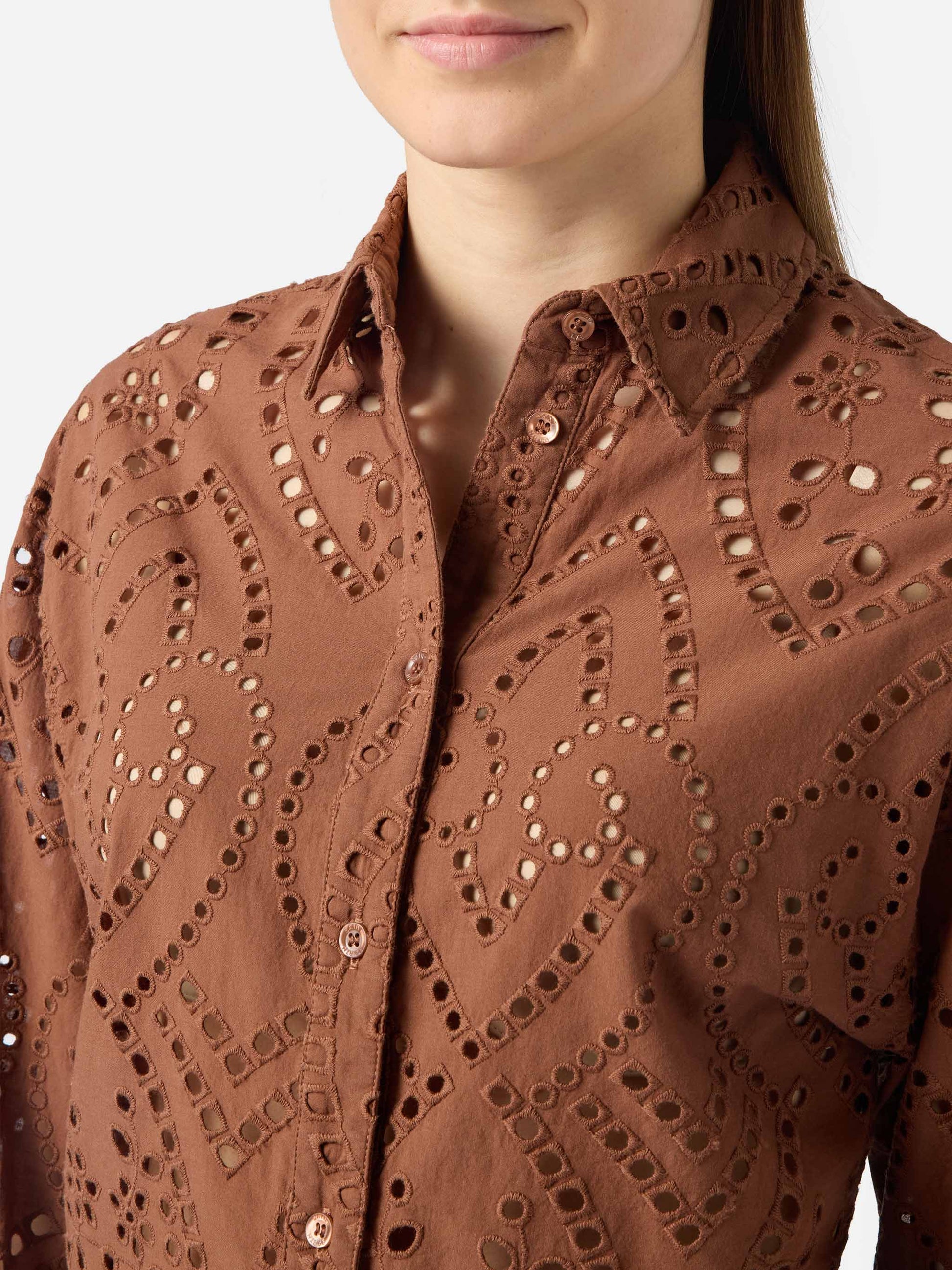 Oriane cropped sangallo cotton shirt in brown