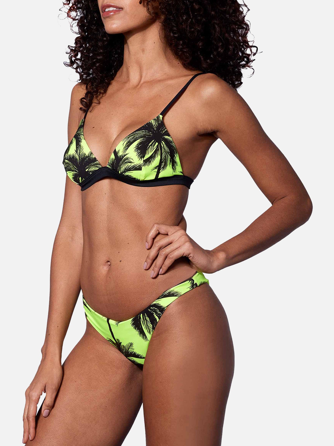 Fluoreszierender Triangel-Bikini mit Palmenmuster in Gelb