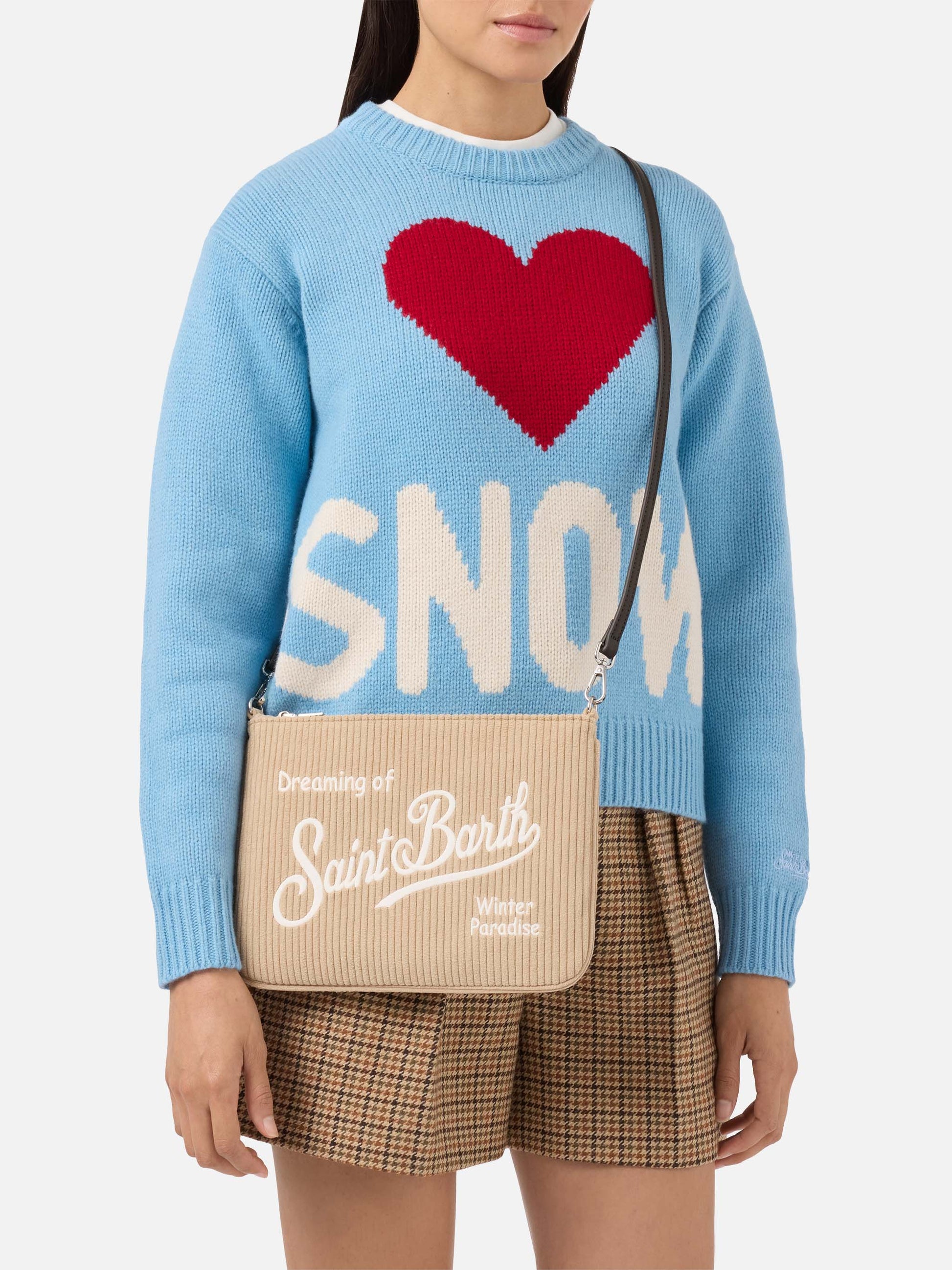 Parisienne Corduroy Crossbody Bag in beige corduroy