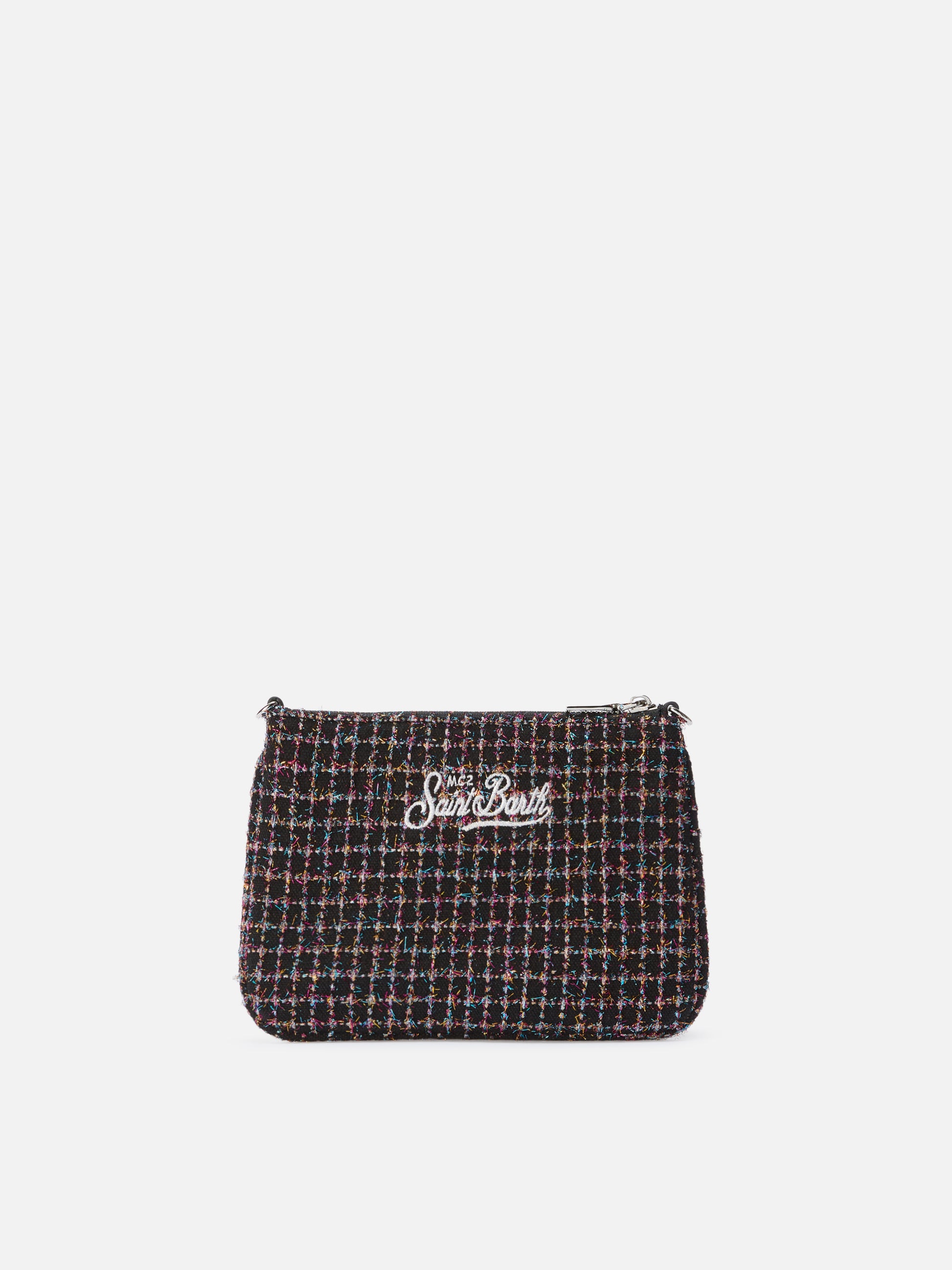 Parisienne Mini-Schultertasche aus glänzendem schwarzem Tweed