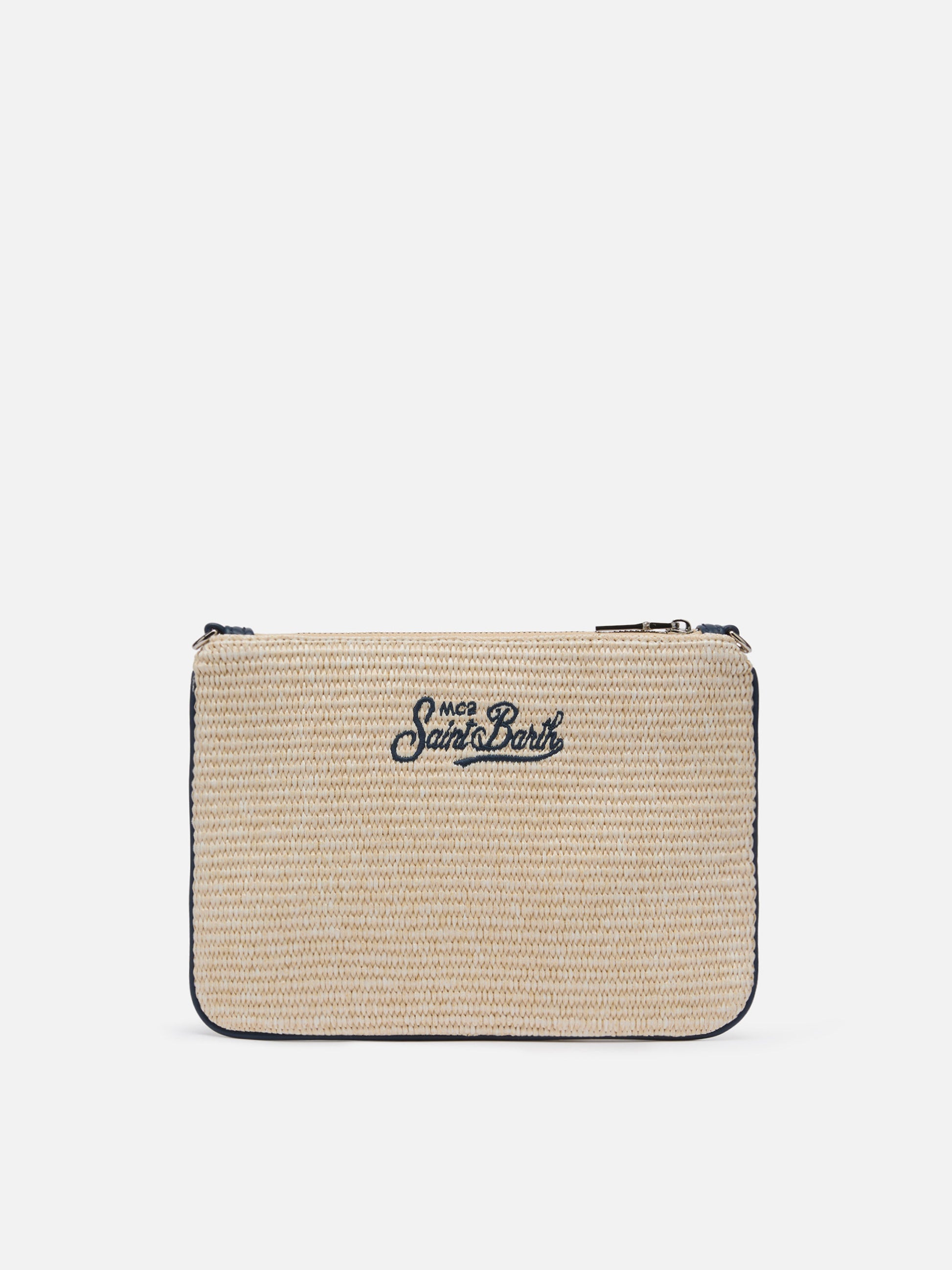 Parisienne – Beuteltasche in Strohoptik mit aufgesticktem Logo