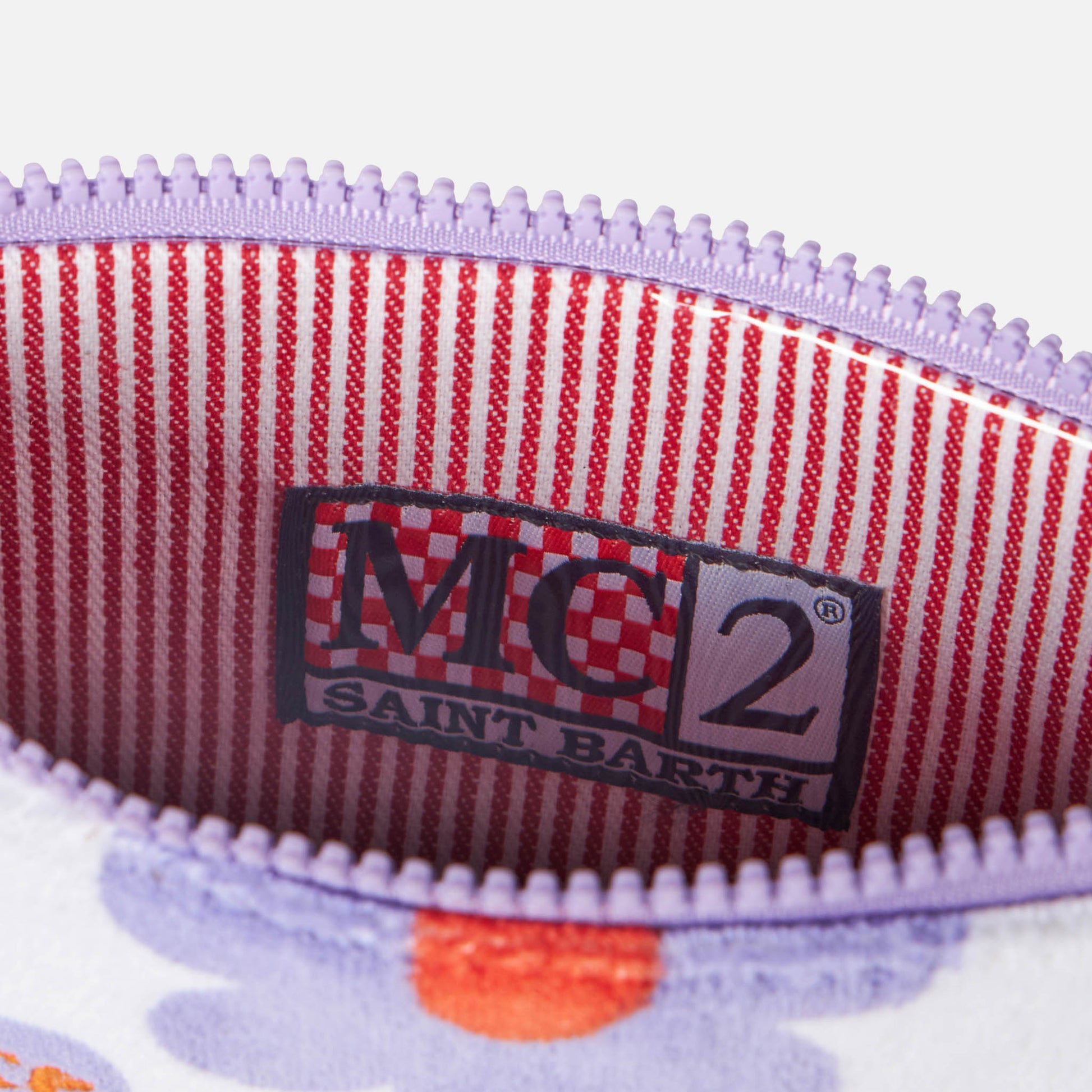 Parisienne-Clutch aus Frottee mit violettem und orangefarbenem Gänseblümchen-Print