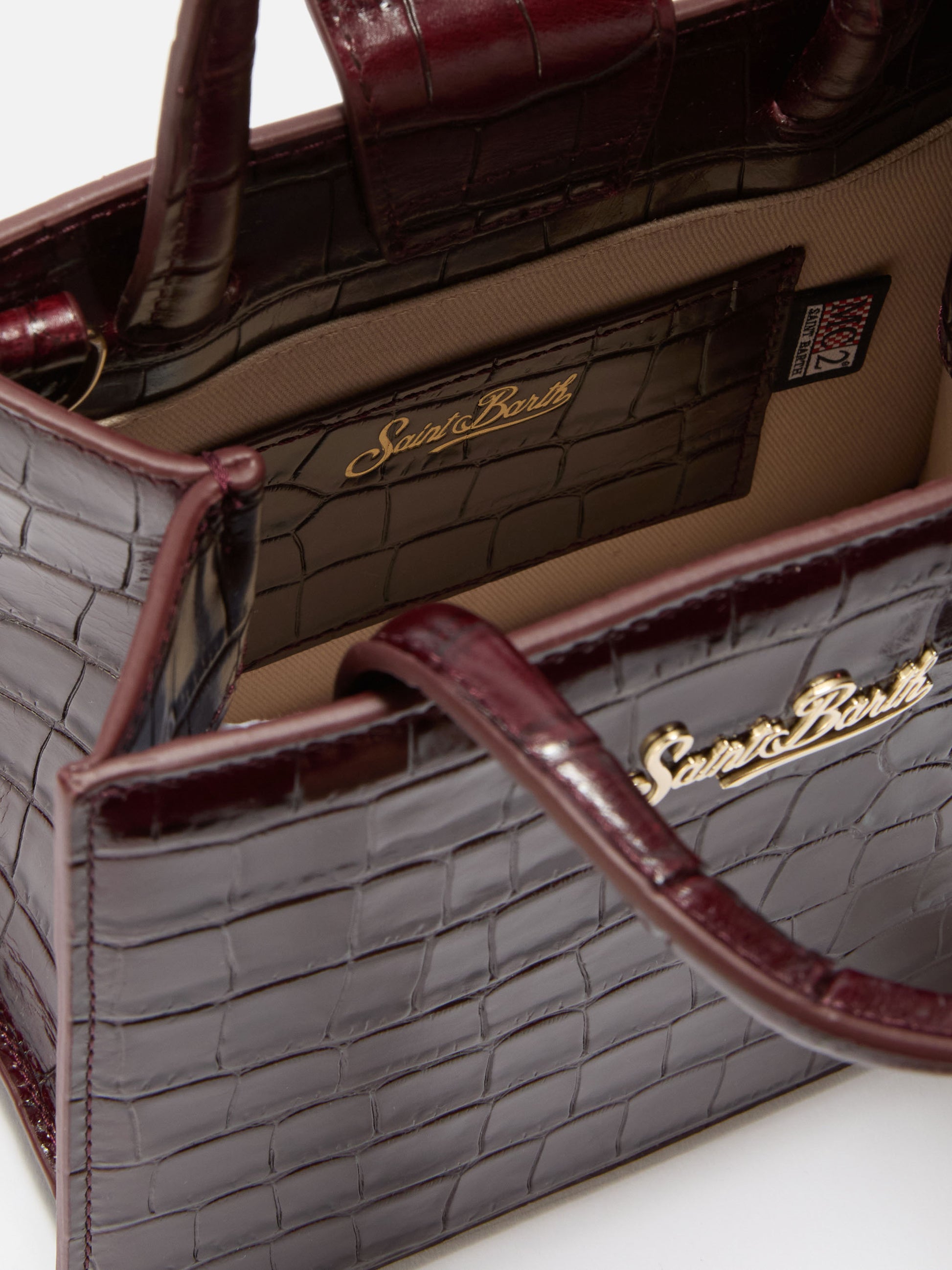 Shop Bag Mini Handbag in burgundy crocodile-print leather
