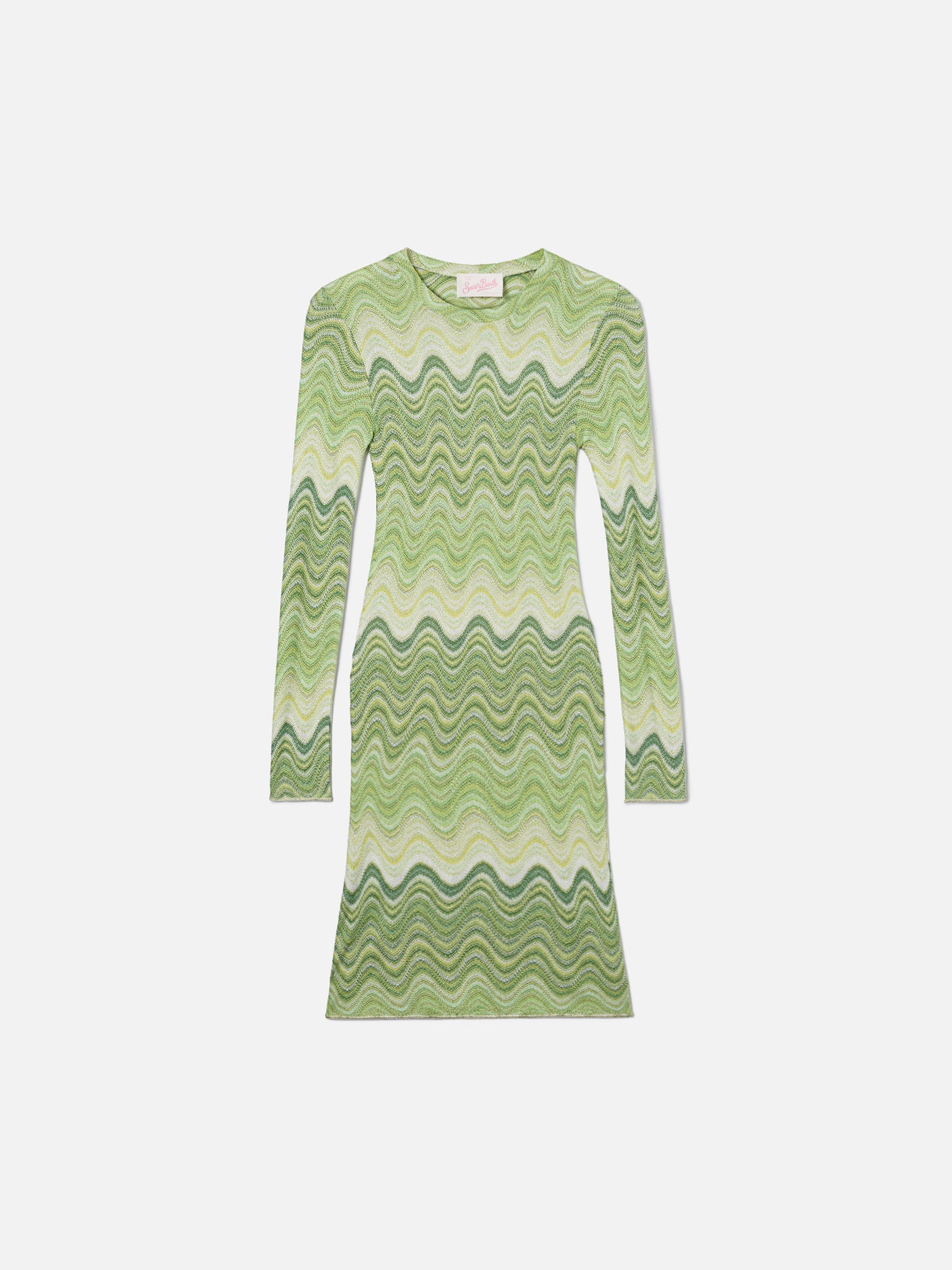 Short Imany dress in green degradé raschel fabric