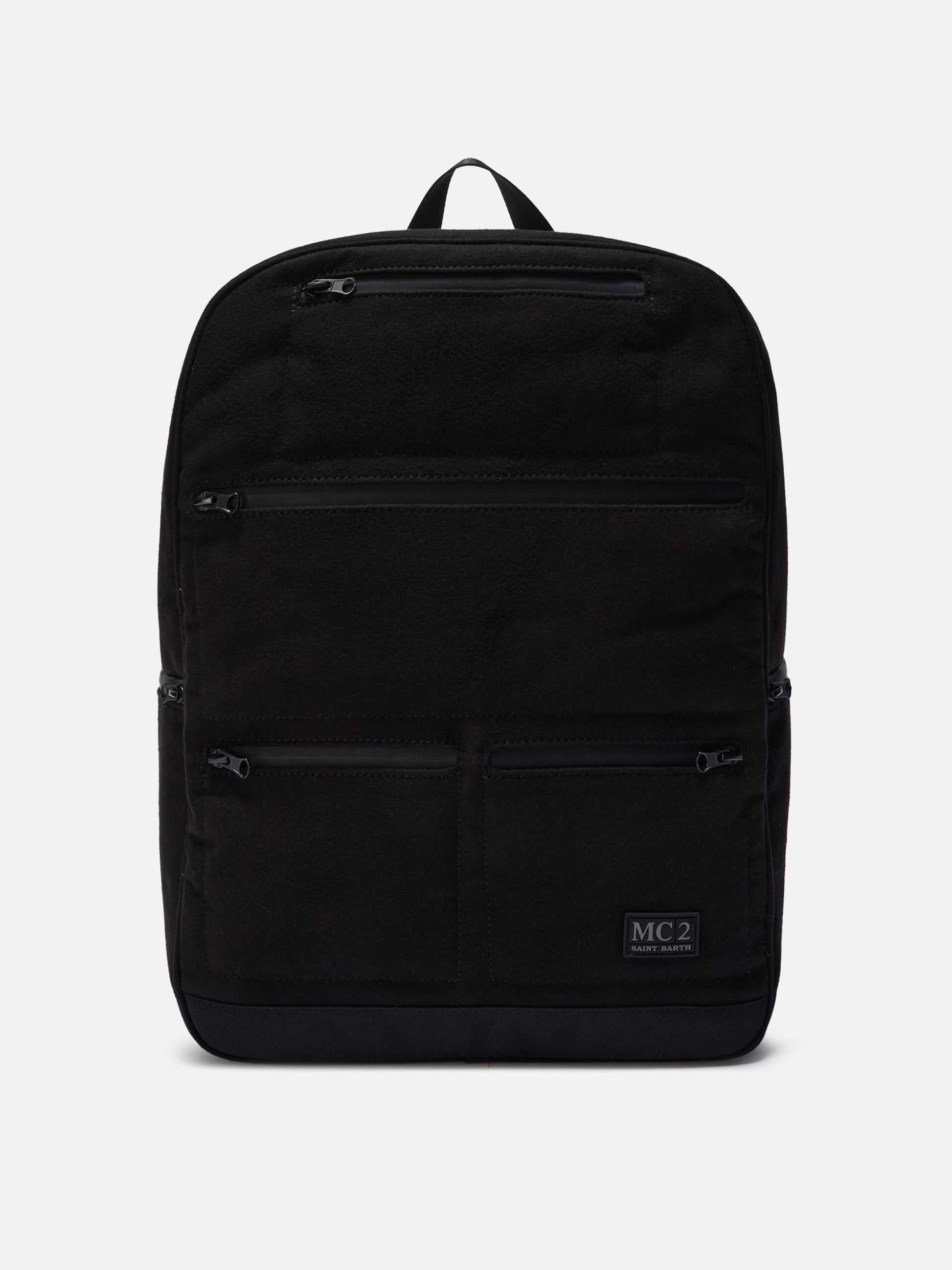 Wallin Filzrucksack aus schwarzem Wollmischgewebe mit Lederdetails