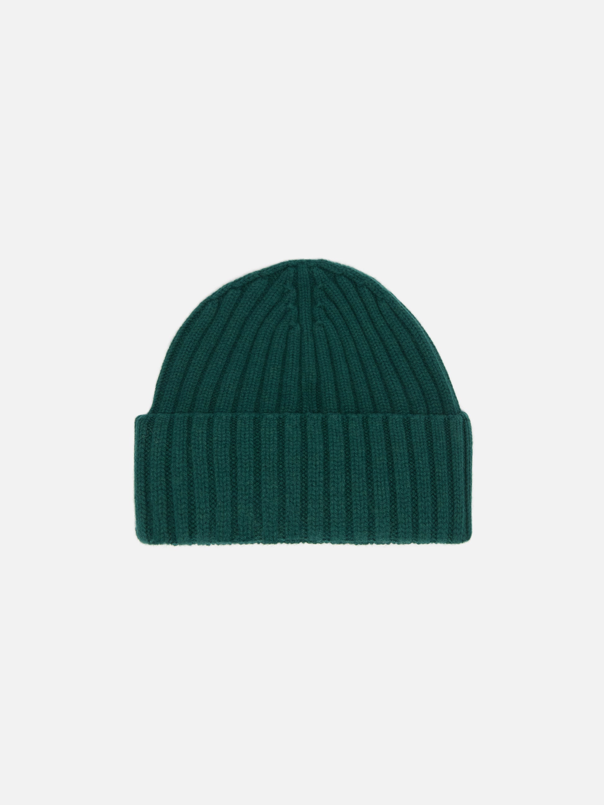Wengen beanie in British green wool with St. Barth embroidery on the turn-up