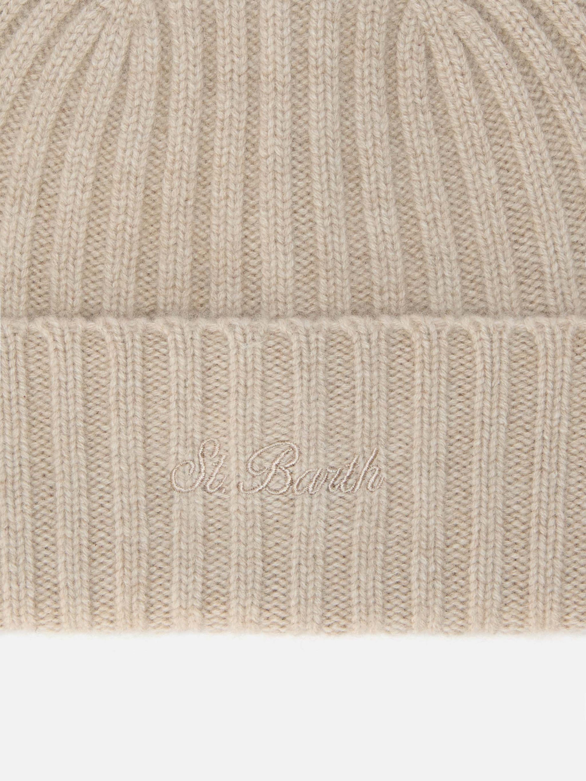 Wengen beanie in cashmere, khaki, with St. Barth embroidery on the turn-up