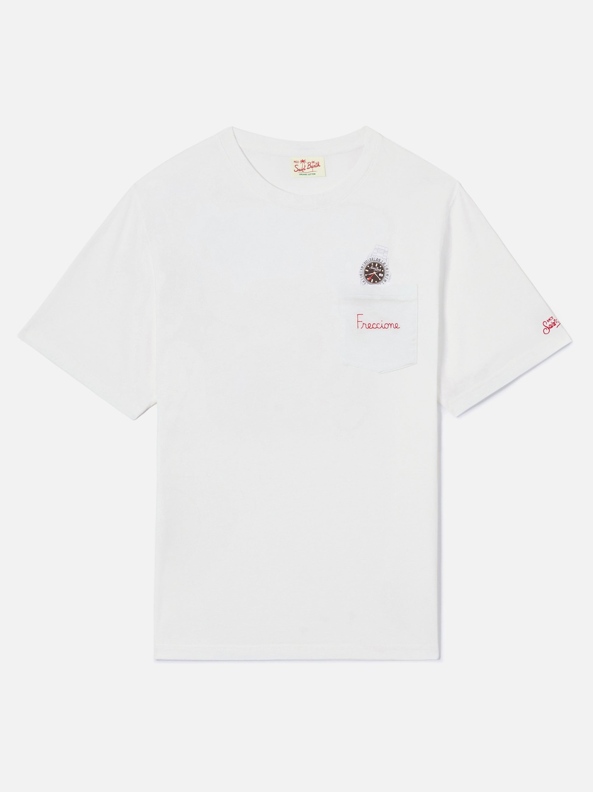White Austin t-shirt with watch and Freccione embroidery