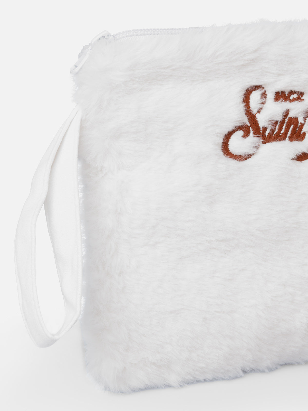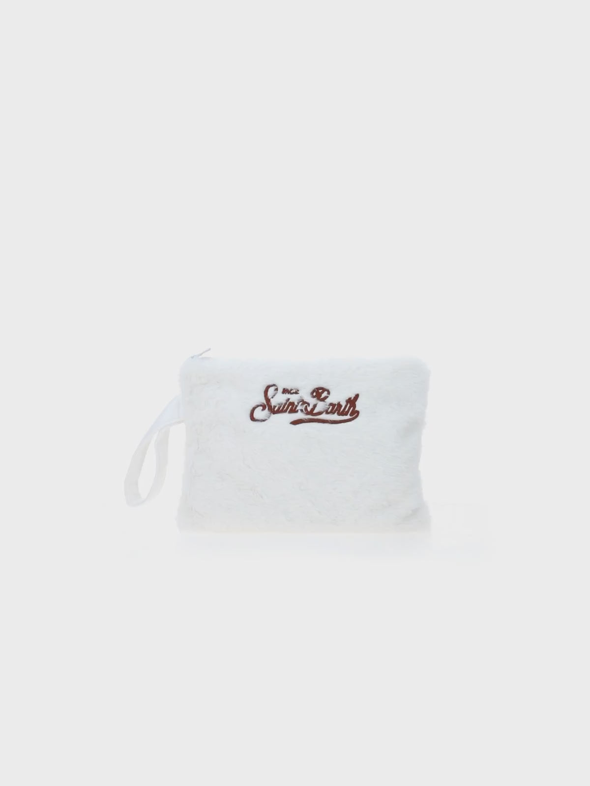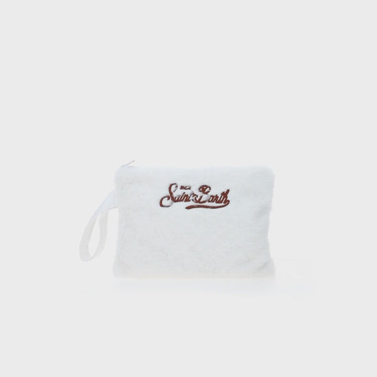 Weiße Pochette Pareasy aus Pelz mit Saint Barth-Stickerei