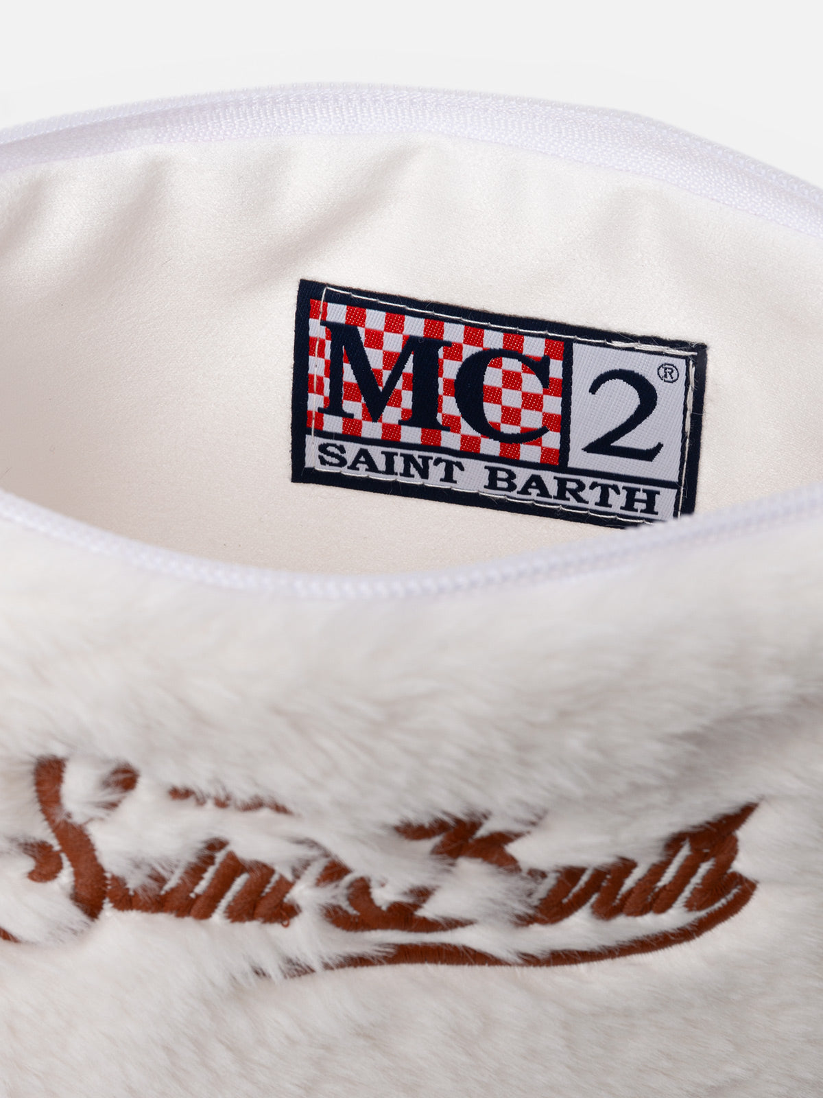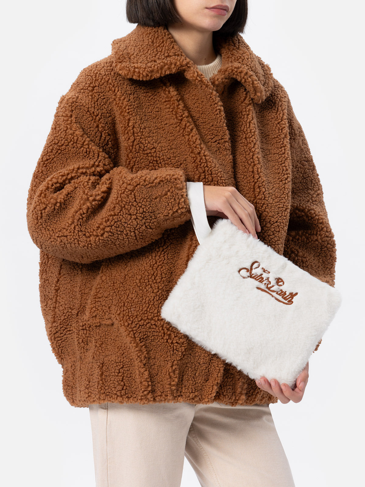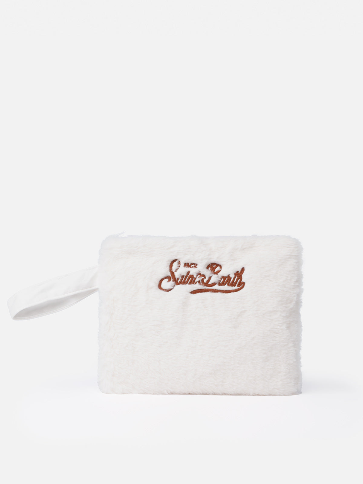 Weiße Pochette Pareasy aus Pelz mit Saint Barth-Stickerei