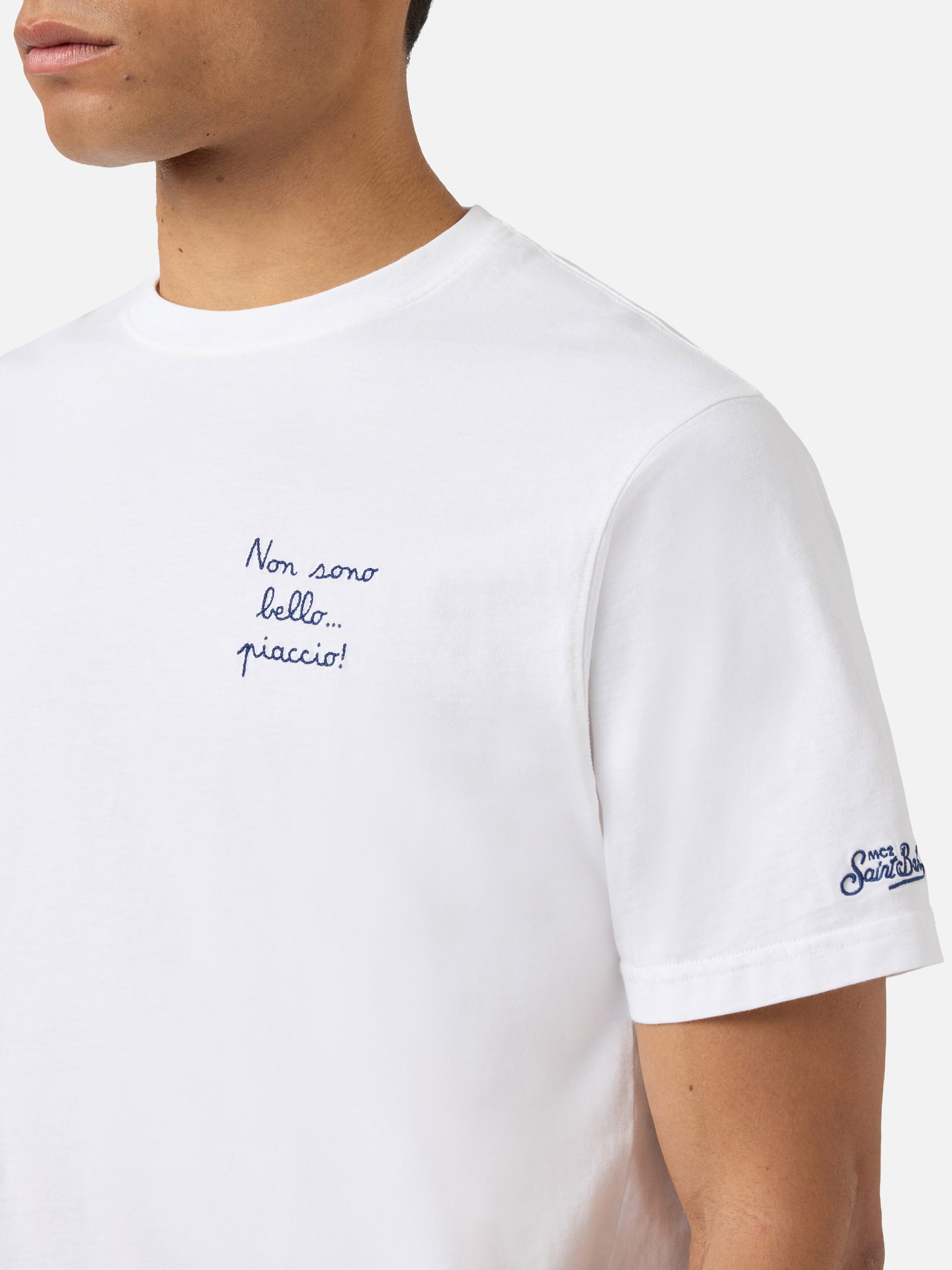 White Portofino T-shirt with Non Sono Bello Piaccio! embroidery