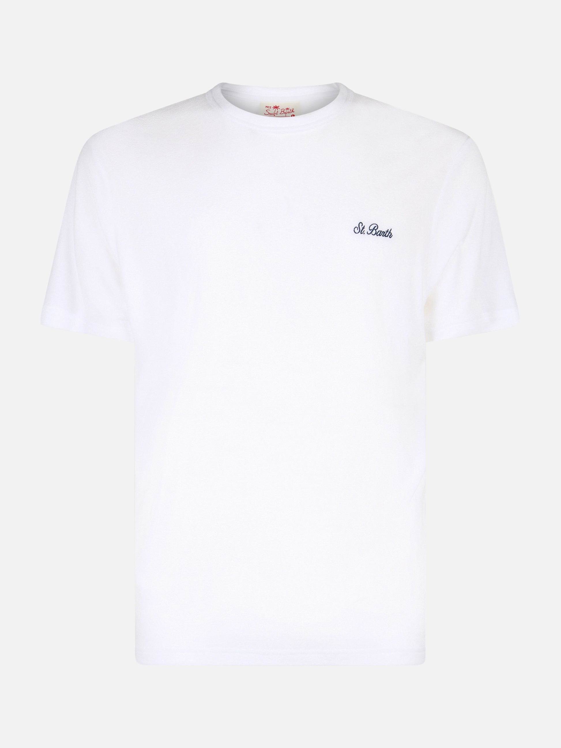 Weißes Frottee-T-Shirt Gary mit St. Barth-Stickerei
