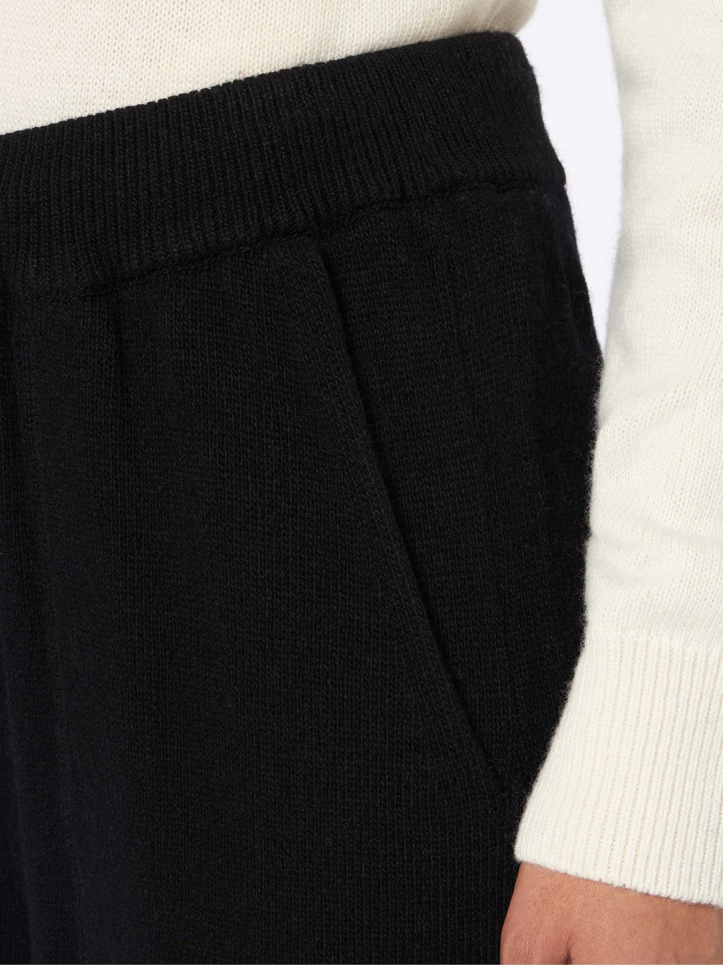 Frau gestrickte schwarze Jogginghose