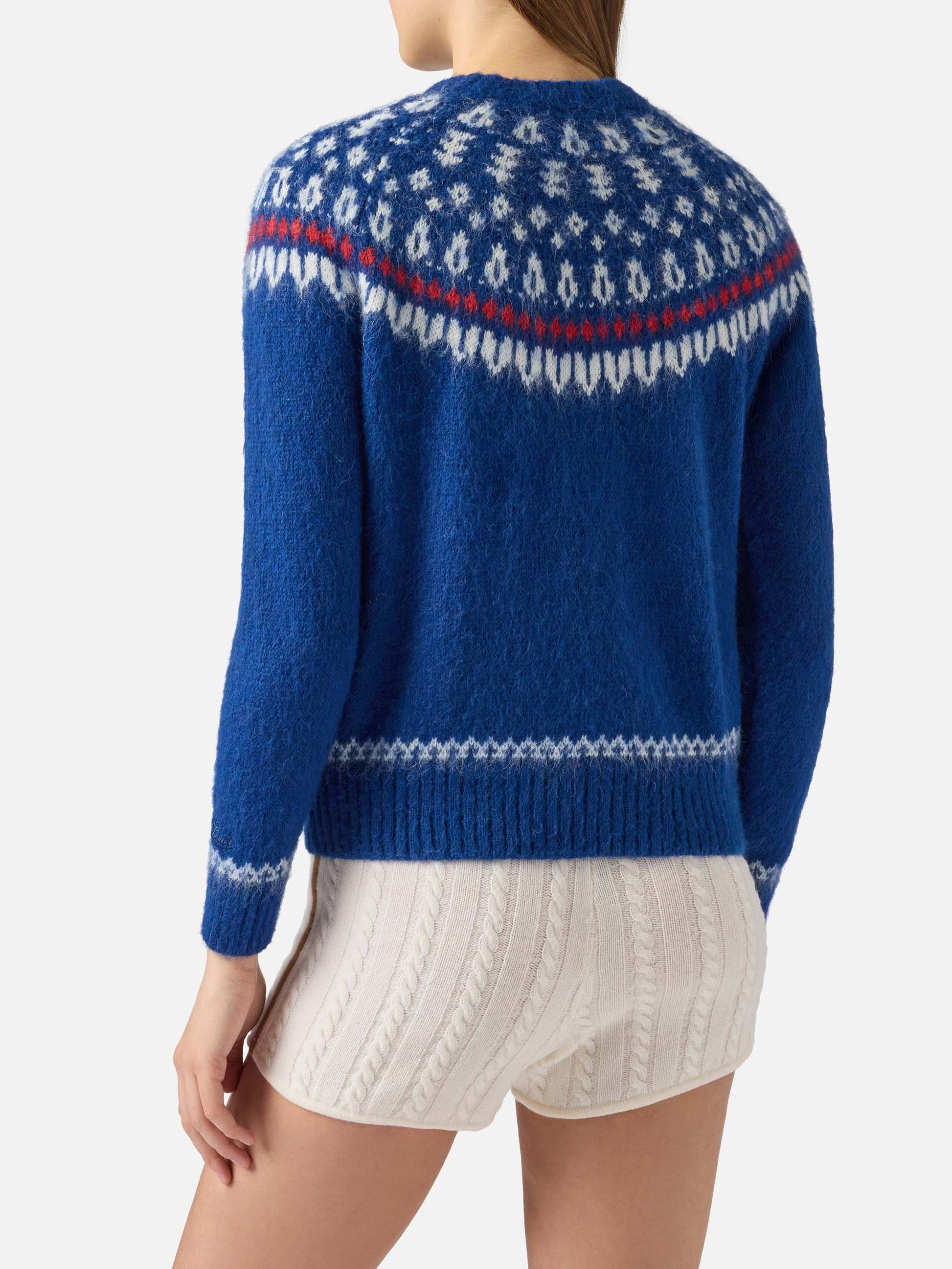 Marineblauer Damen-Pullover aus nordischem Jacquard mit Rundhalsausschnitt