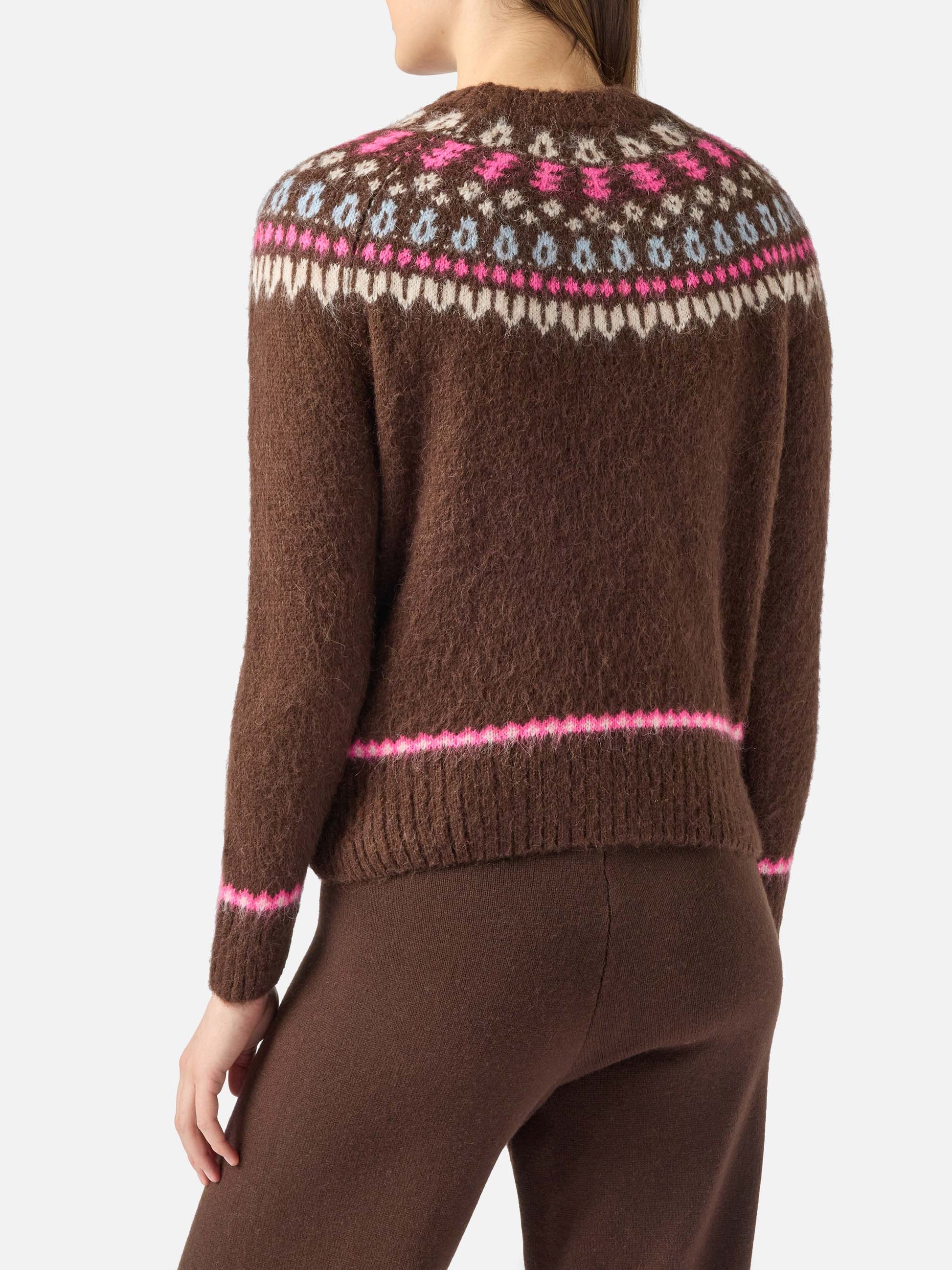 Brauner Pullover Queen Nordic Soft mit Fair-Isle-Jacquard und Sun Moritz-Stickerei