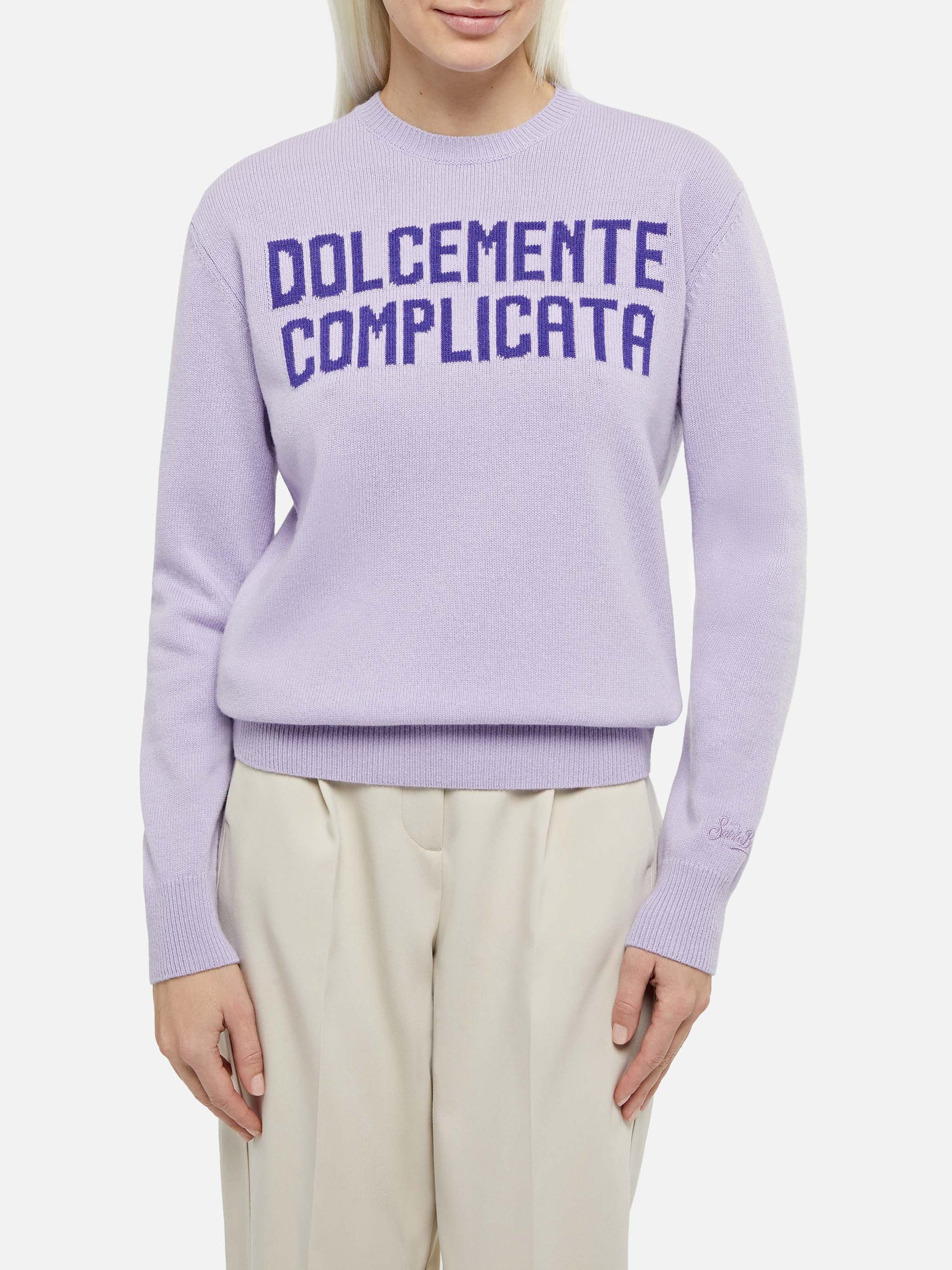 Lila Damenpullover New Queen mit Dolcemente Complicata-Print