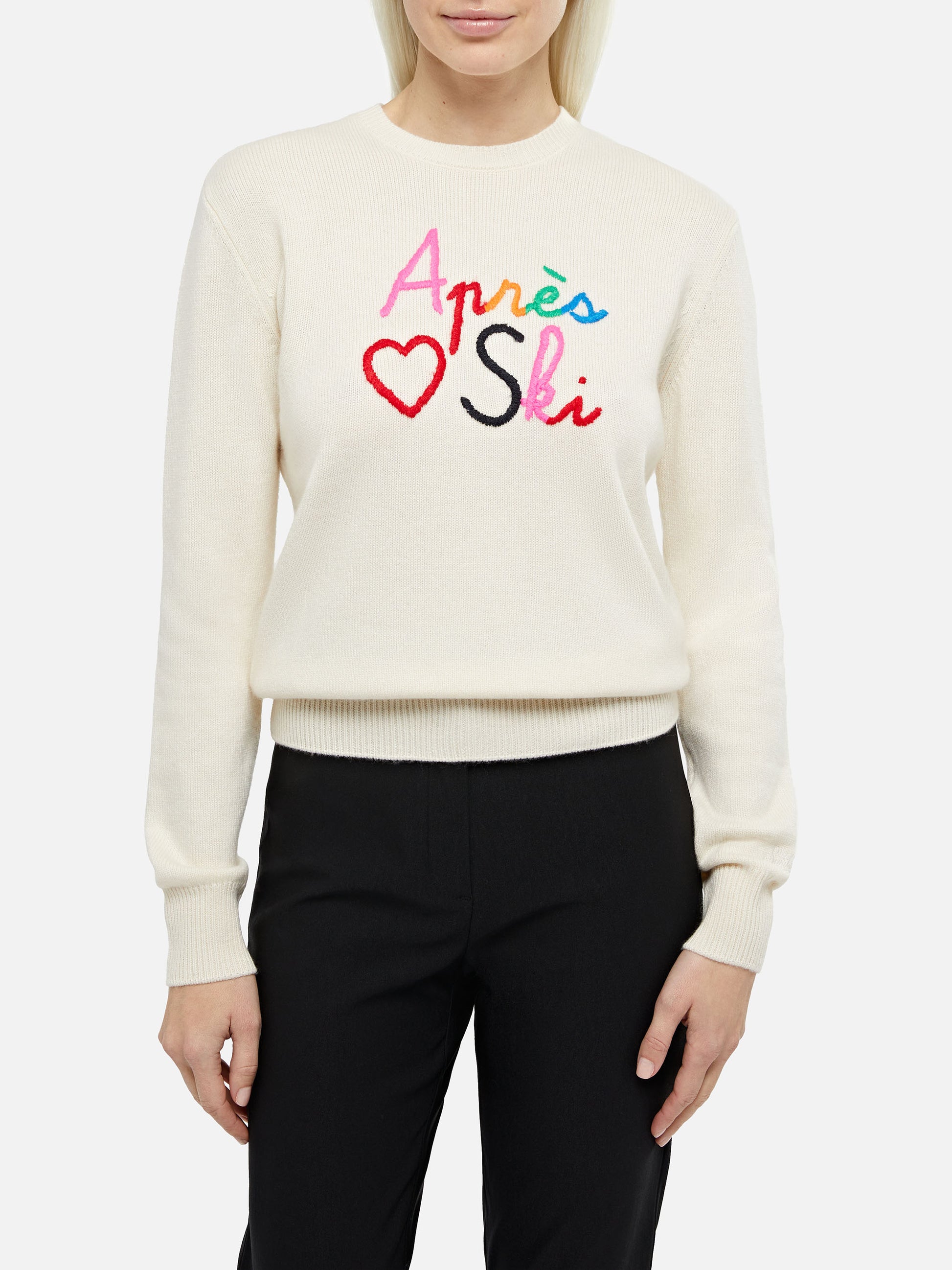 Weißer Damenpullover New Queen mit Apres-Love-Ski-Stickerei