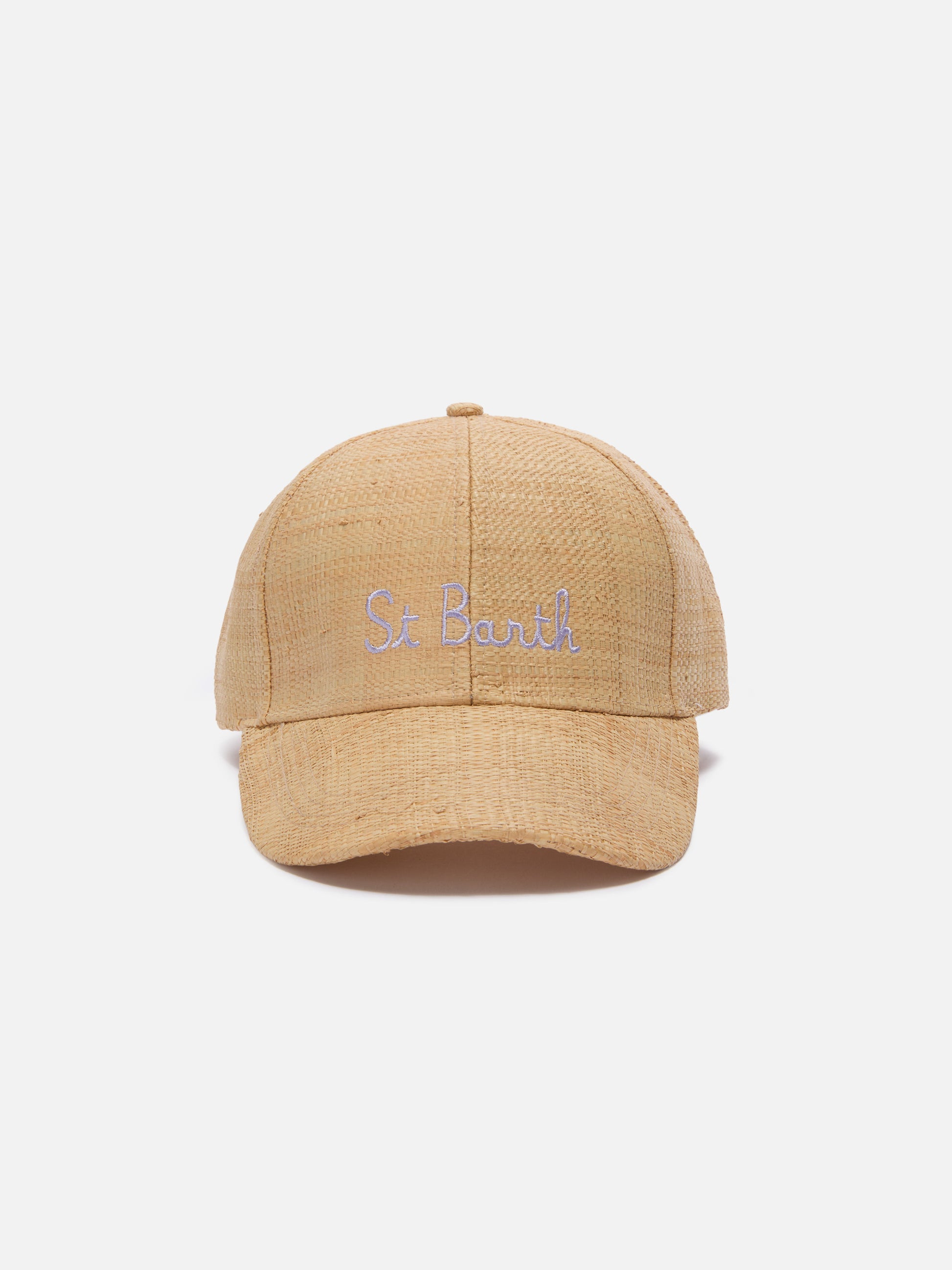 Cappellino da baseball in raffia beige con ricamo St. Barth