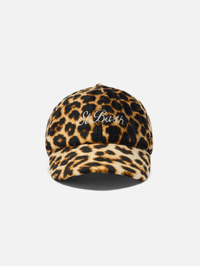 Cappello con visiera Baseball Velvet in velluto leopardato