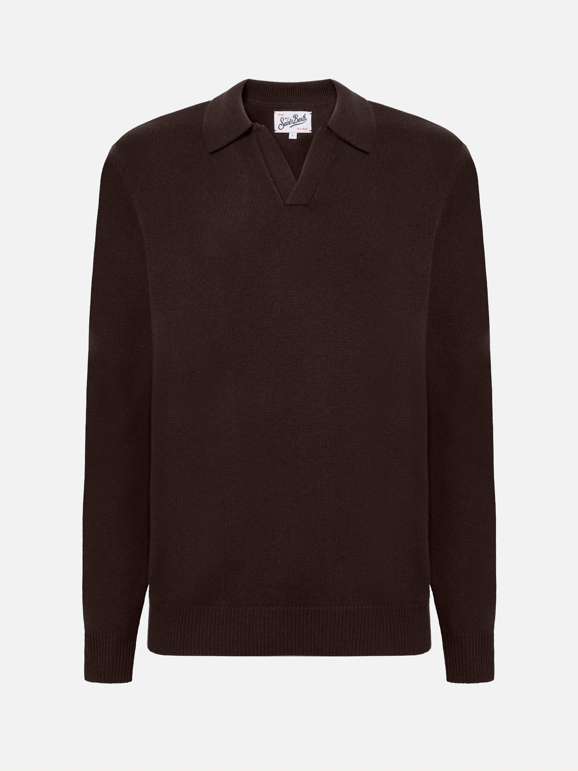 Polo in maglia Covent in pura lana marrone