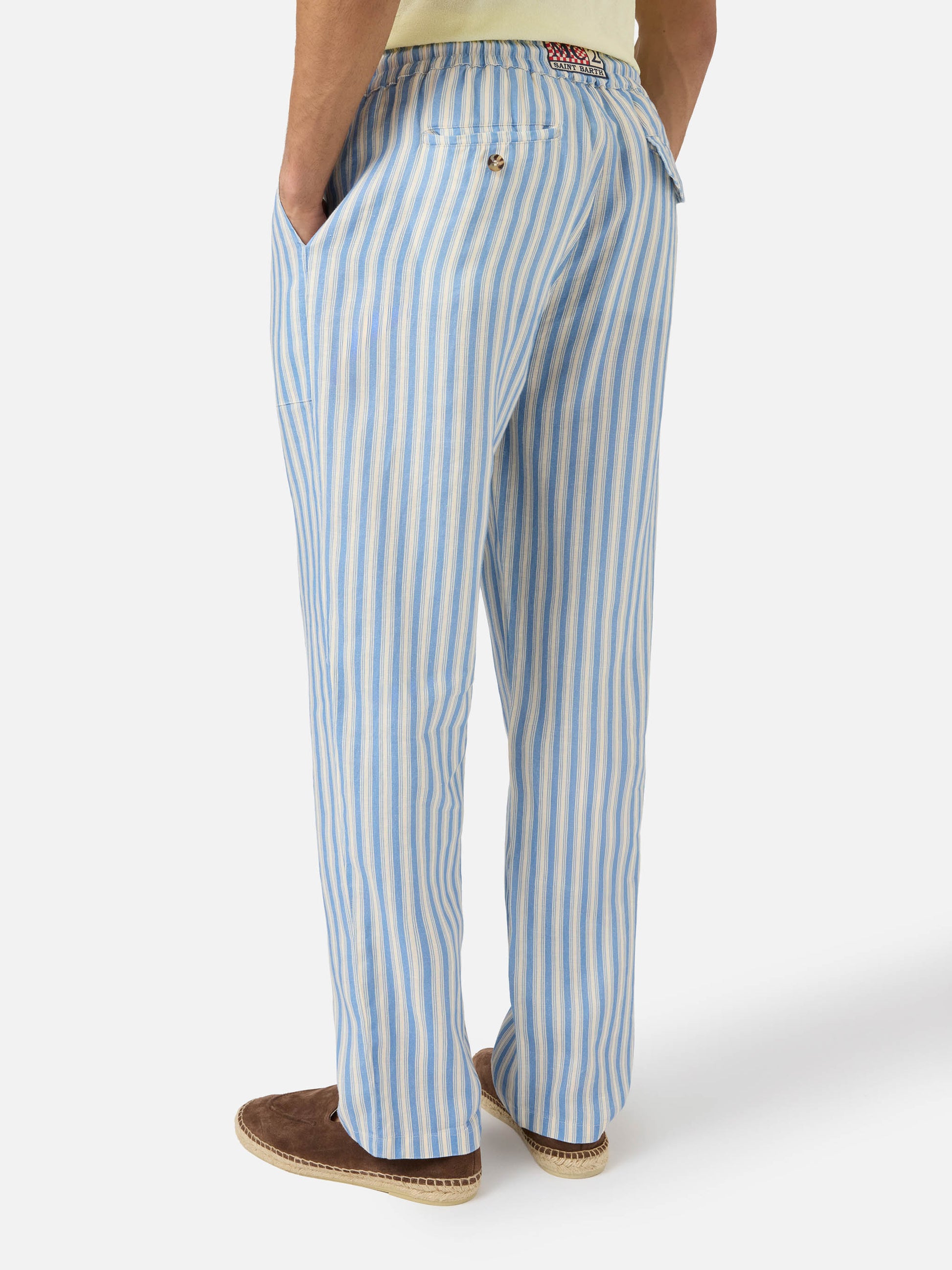 Pantalone Calais lungo in puro lino a righe panna e azzurro