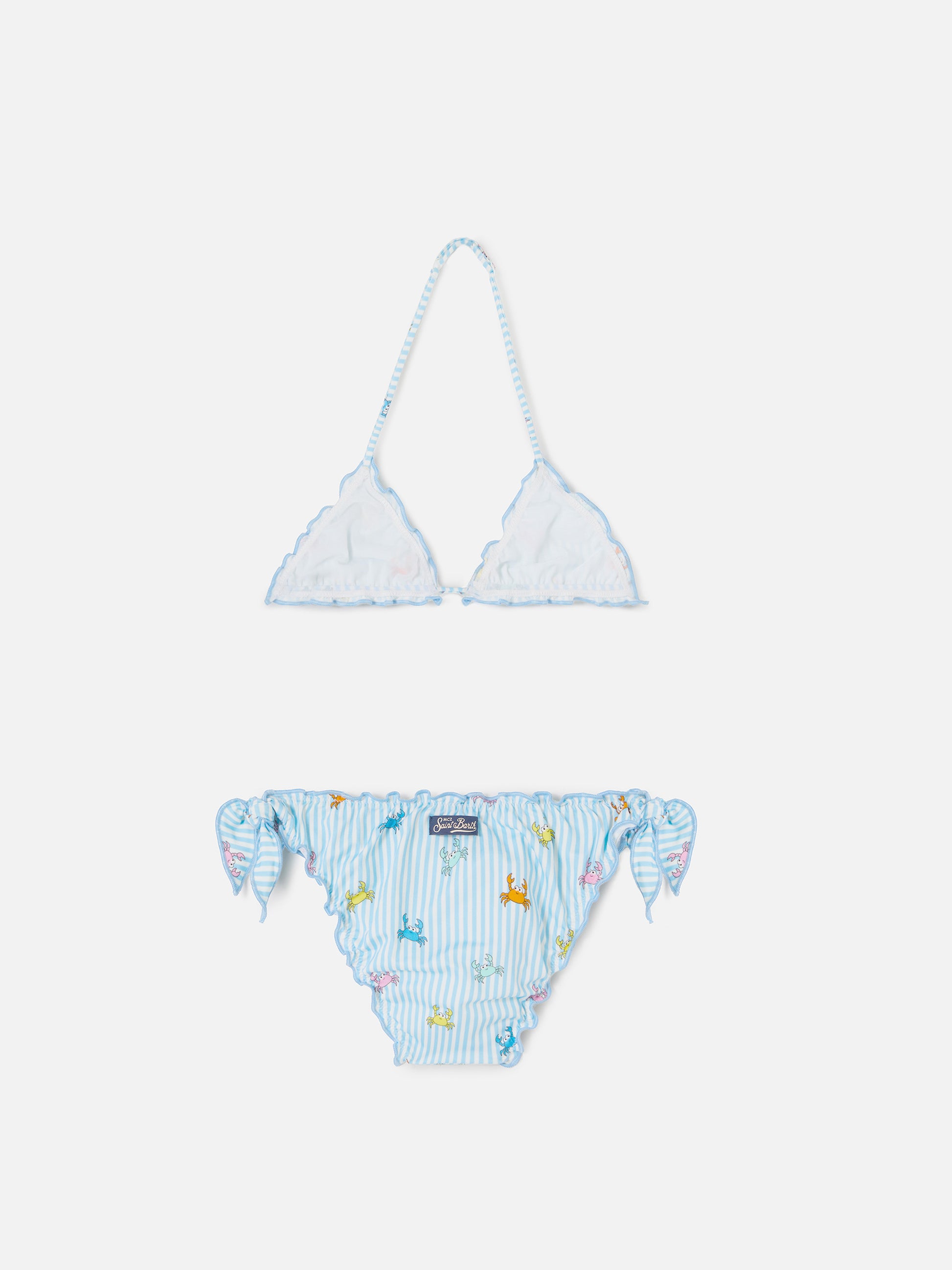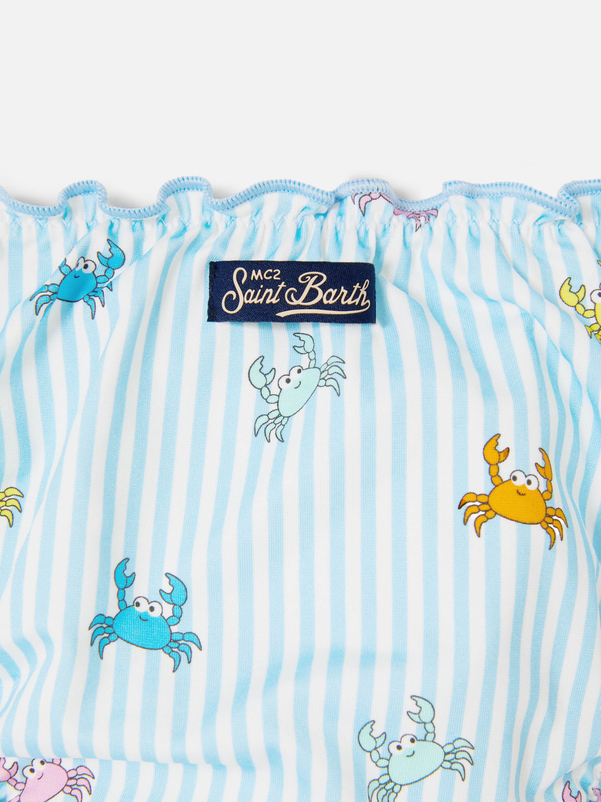 Bikini Cris in tessuto elasticizzato a righe con stampa granchietti