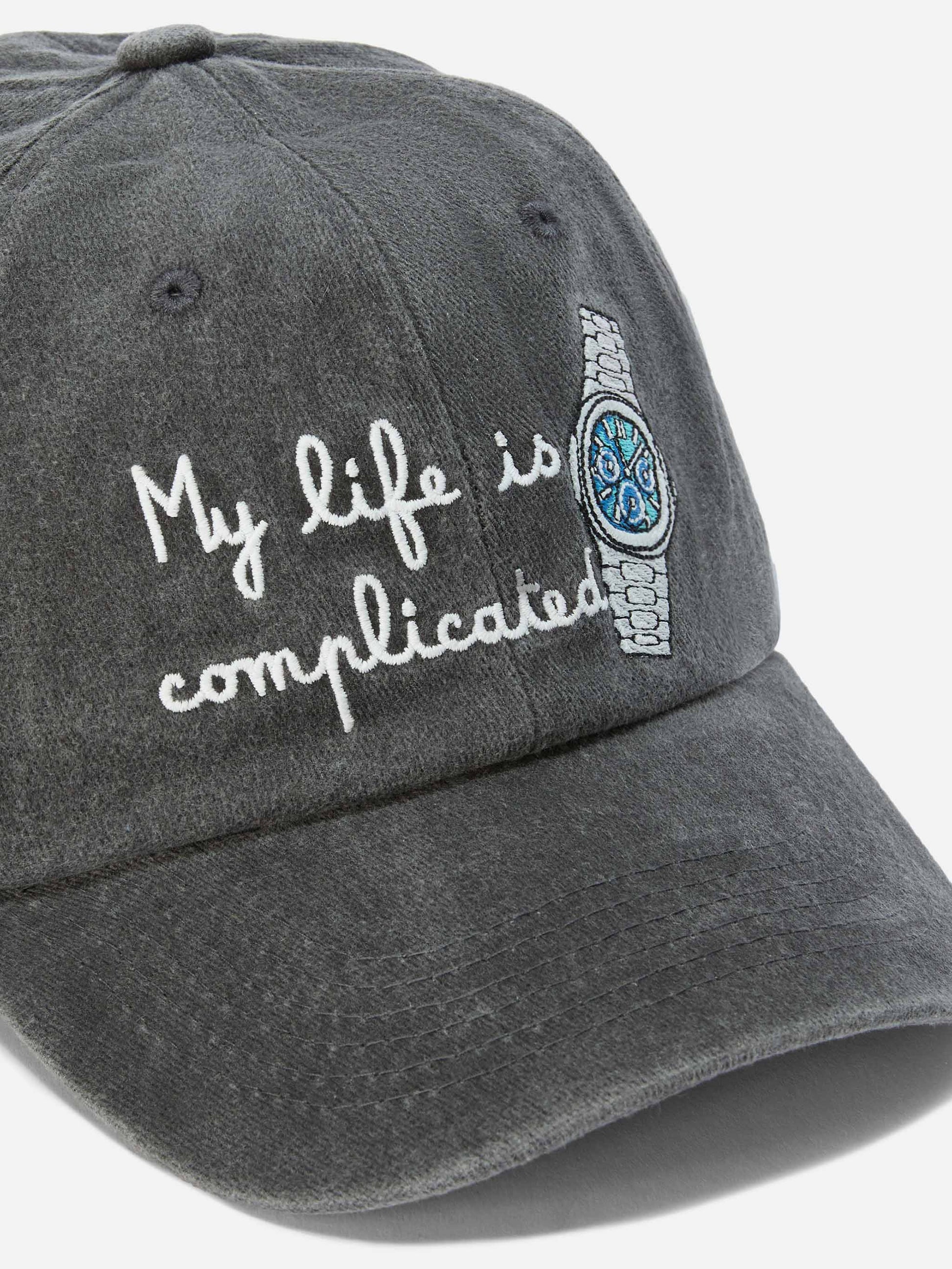 Cappello con visiera Davis in denim con ricamo My life is complicated