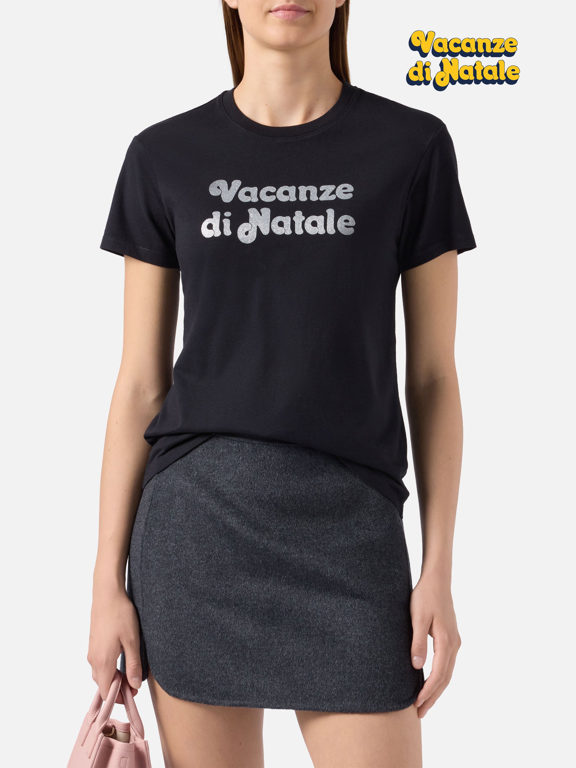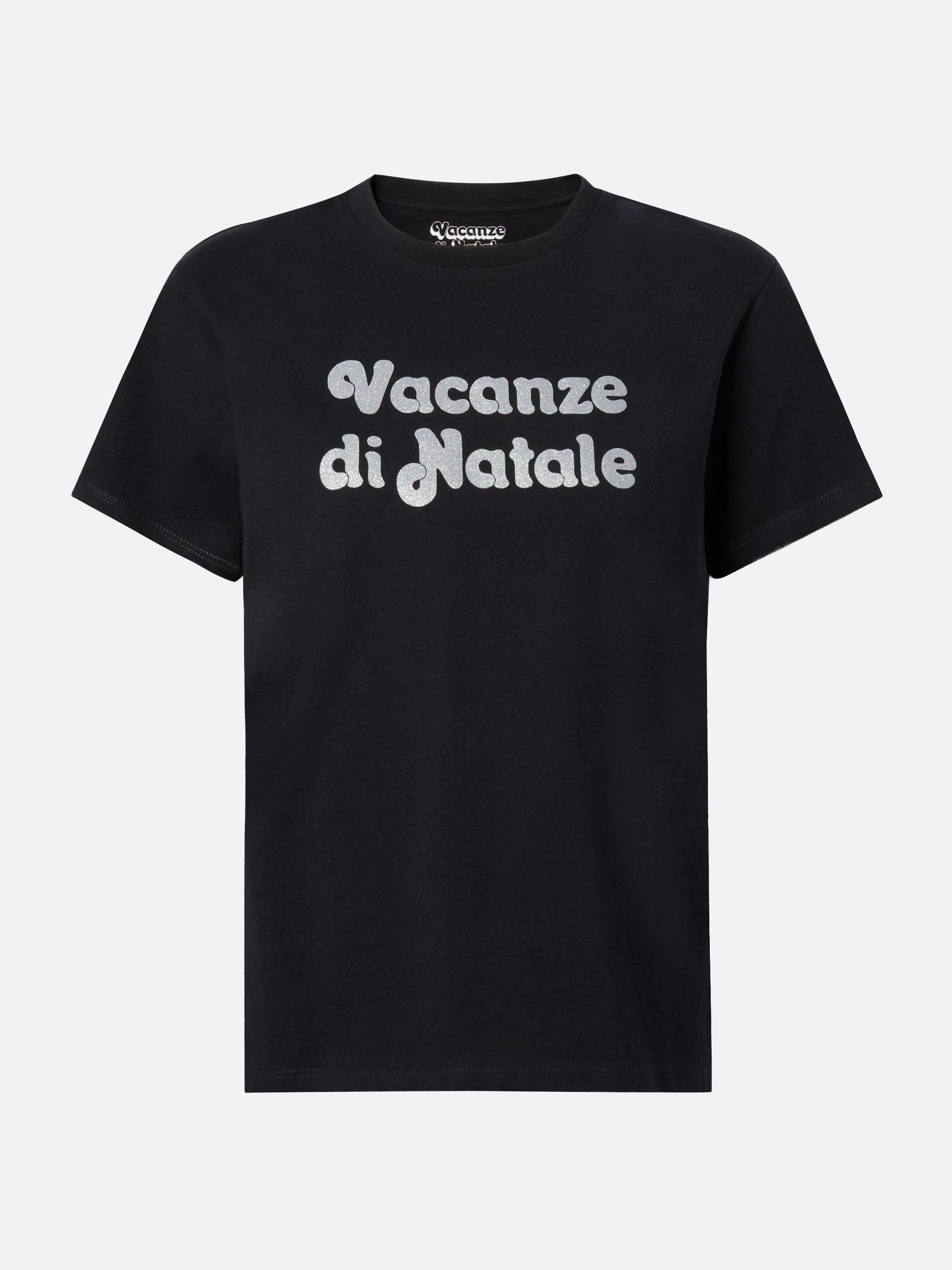 T-shirt Emilie in cotone nero con applicazione glitter Vacanze di Natale | VACANZE DI NATALE SPECIAL EDITION