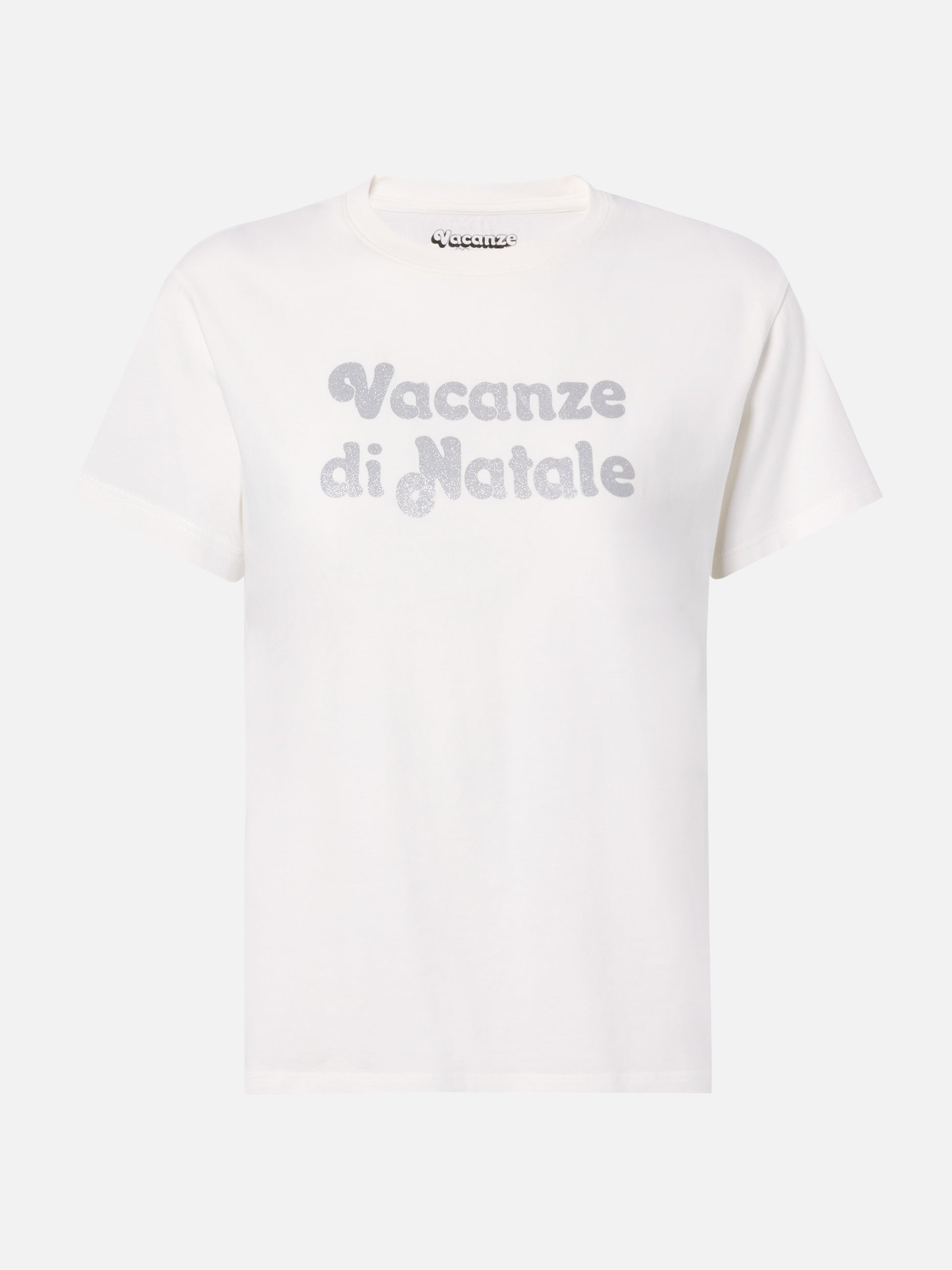 T-shirt Emilie in cotone bianco con applicazione glitter argento Vacanze di Natale | VACANZE DI NATALE SPECIAL EDITION